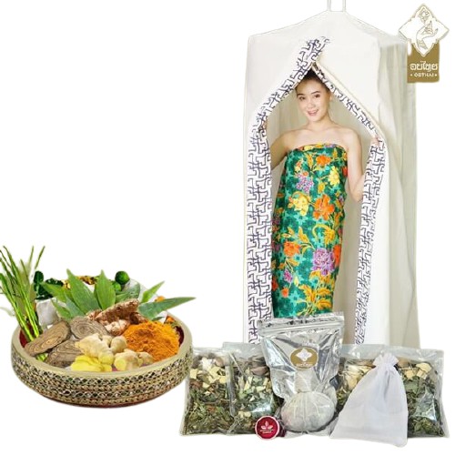 OBTHAI เซตกระโจมอบสมุนไพร และสมุนไพรอบตัว สูตรวัยทอง !! ผ้าหนาเก็บความร้อนได้ดี สมุนไพรหอม!!ส่งฟรี !! (แบบแขวน)