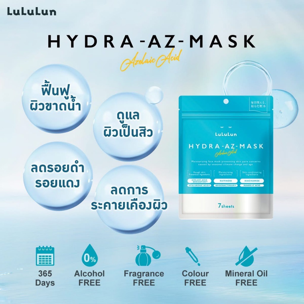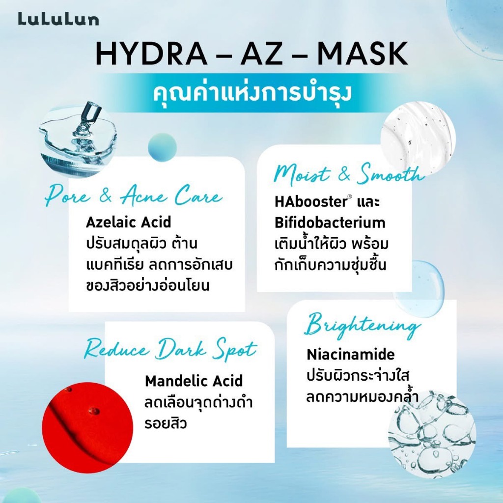 (ซอง 7 แผ่น) LuLuLun Hydra AZ Face Mask ลูลูลูน แผ่นมาสก์หน้า สูตรเพิ่มความชุ่มชื้น ดูแลปัญหาสิวและรอยดำจากสิว