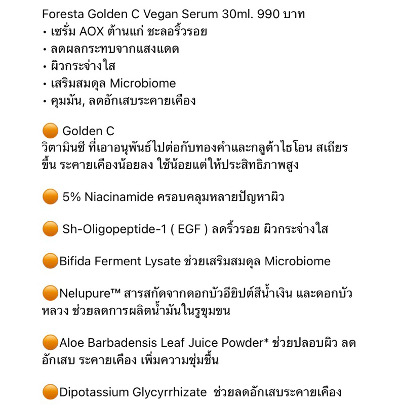 (ตัวแทน) Foresta Golden C Vegan Serum 30ml.(ส่งฟรี) เซรั่มถังส้ม