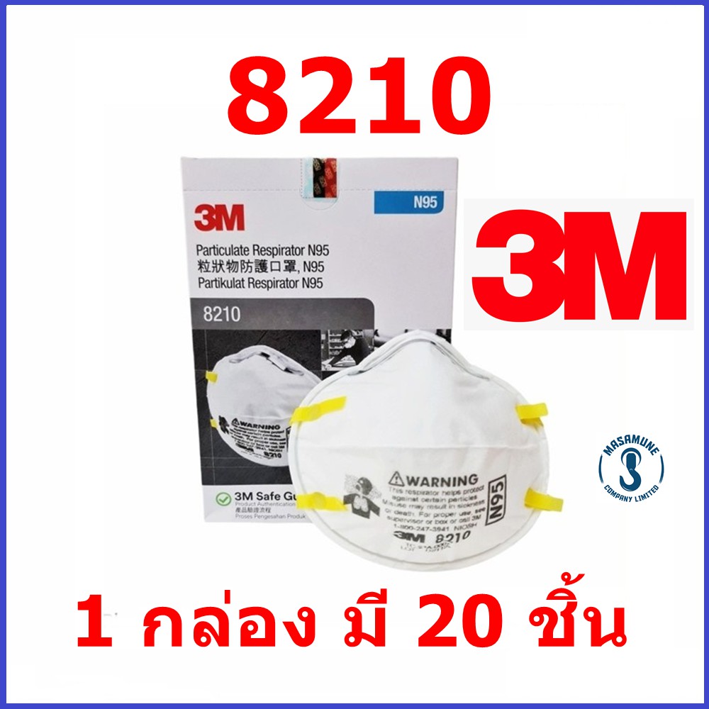 (พร้อมส่ง) หน้ากาก N95 3M รุ่น 8210 ของแท้ กล่องละ 20 ชิ้น แบบไม่มีวาล์ว