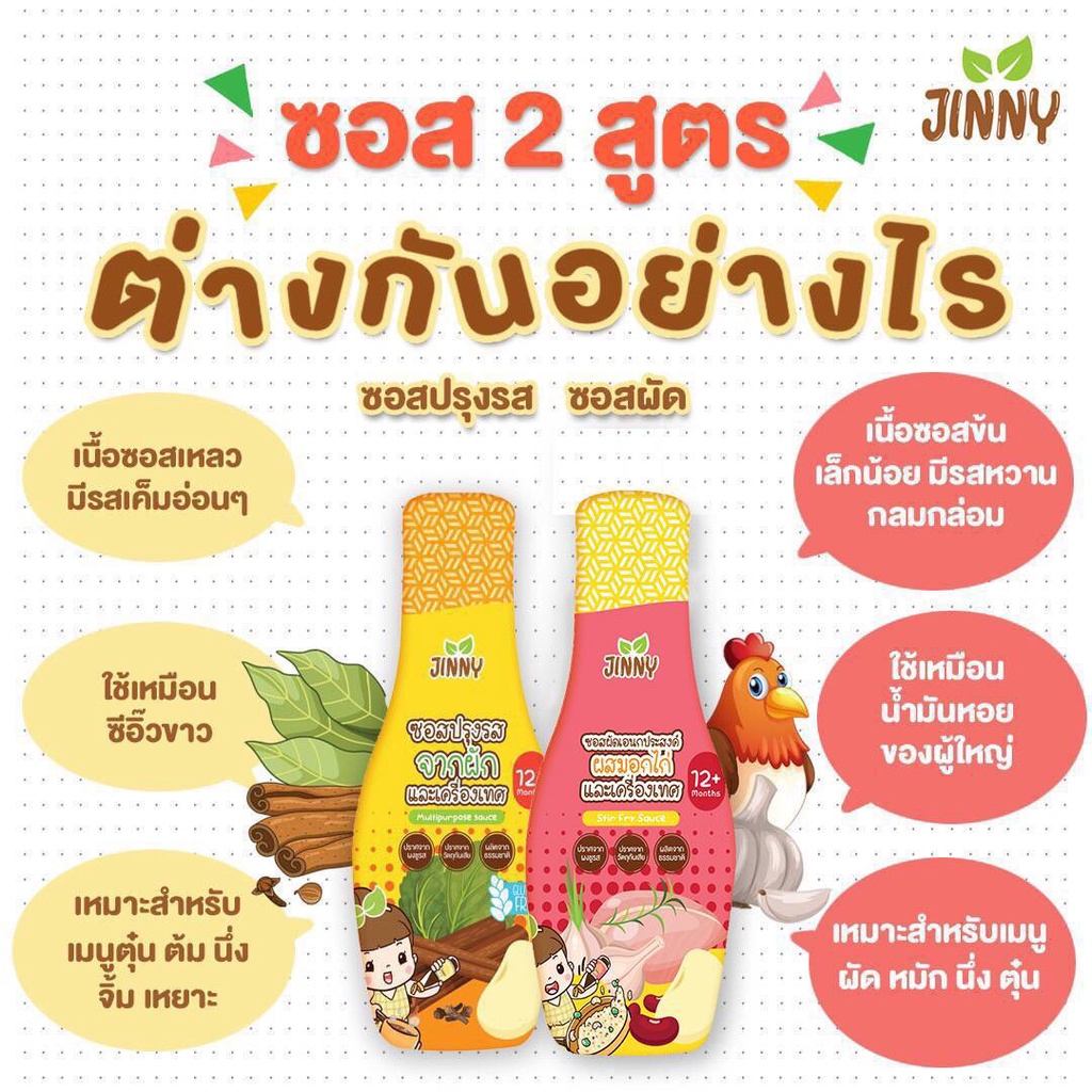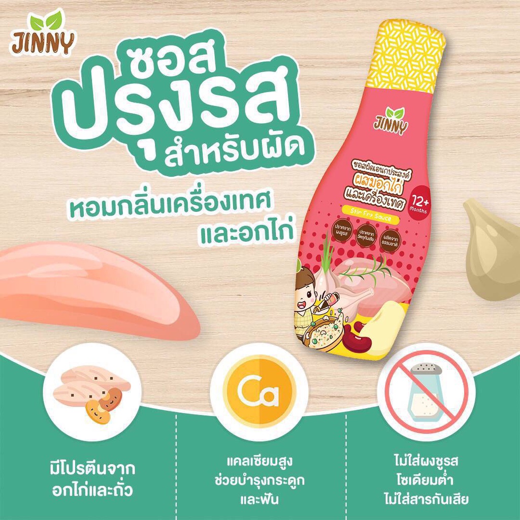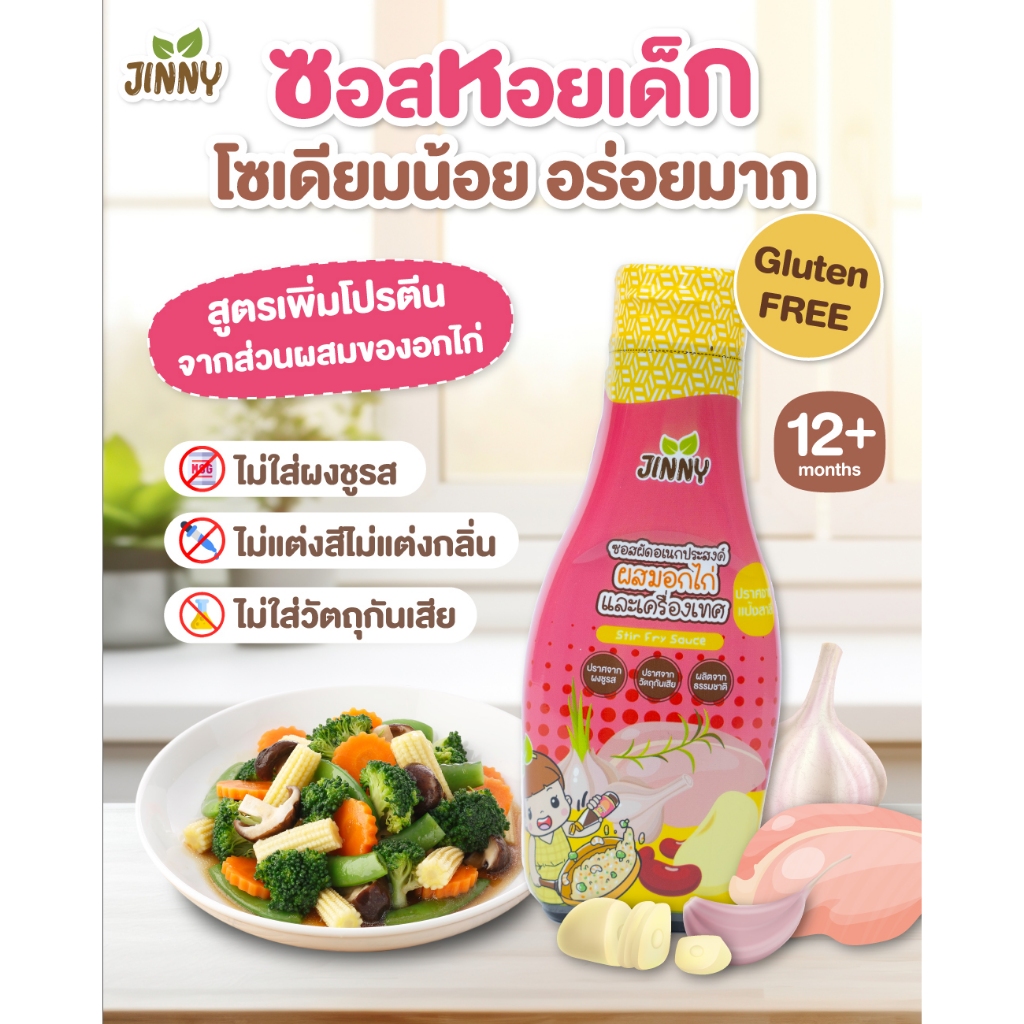 JINNY ซอส ผัดผสมไก่ (มีฮาลาล) ปราบลูกกินยาก ซอสเด็ก สูตรโซเดียมต่ำ