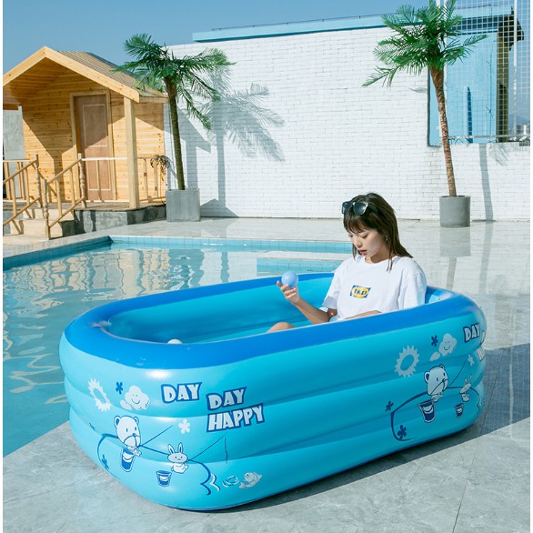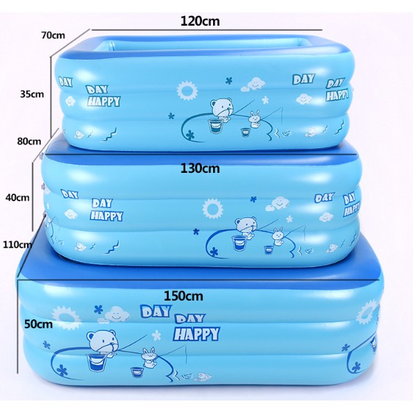 (เกรด A แบบหนา) สระน้ำเป่าลมเด็ก สระน้ำเด็กเป่าลม สระว่ายน้ำทรงเหลี่ยม พื้นกันลื่น(No box) 120/150/180CM