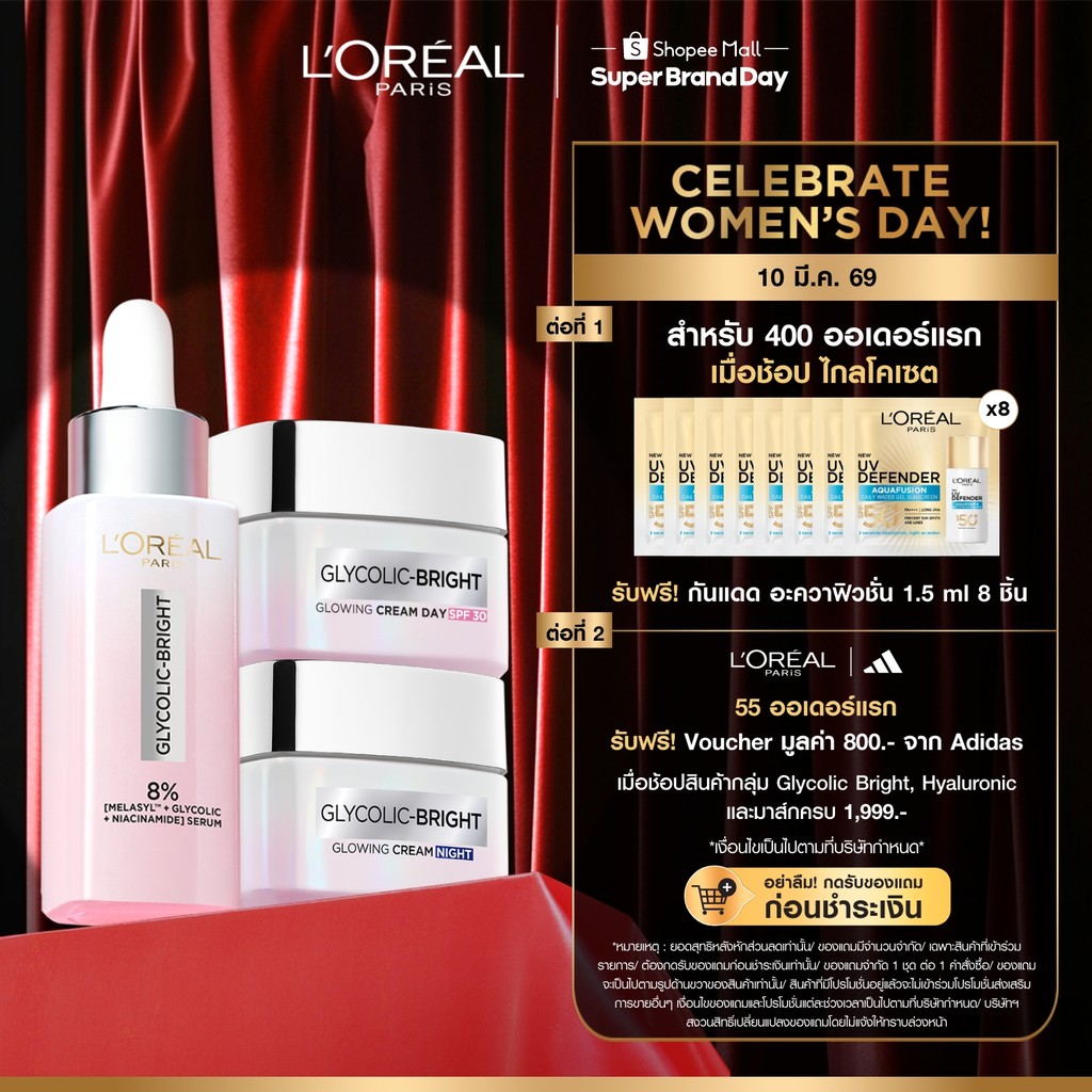[เซต] ลอรีอัล ปารีส L'Oréal Paris Glycolic Bright Anti-Dark Spot Set เซรั่ม30ml + เดย์ครีม50ml + ไนท์ครีม50ml