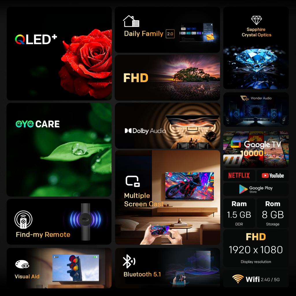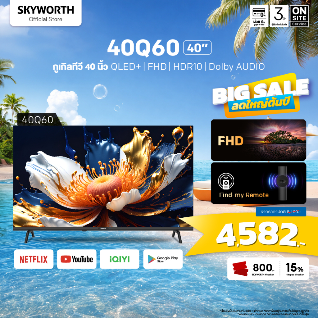 ใหม่ล่าสุด! SKYWORTH กูเกิลทีวี 40 นิ้ว QLED+ รุ่น 40Q60 Full HD Google smartTV Netflix Youtube