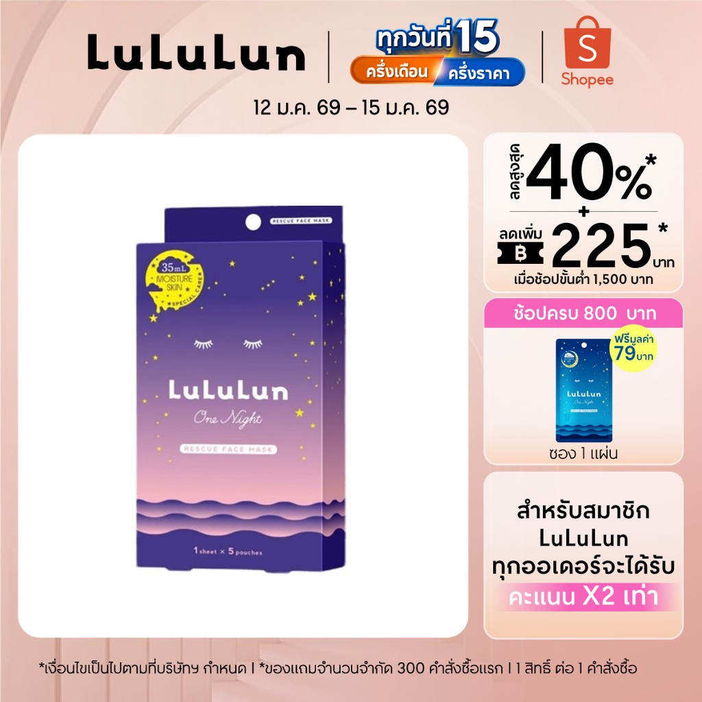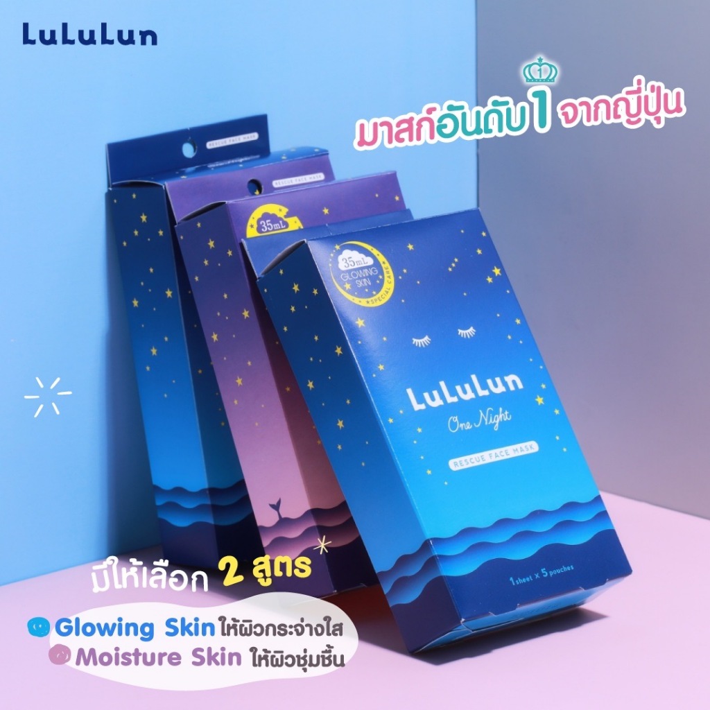 (แพ็ค 5 แผ่น) LuLuLun One Night Hydration Face Mask ลูลูลูน แผ่นมาส์กหน้า สูตรผิวชุ่มชื้น เปล่งประกาย วัน ไนท์ ไฮเดรชัน