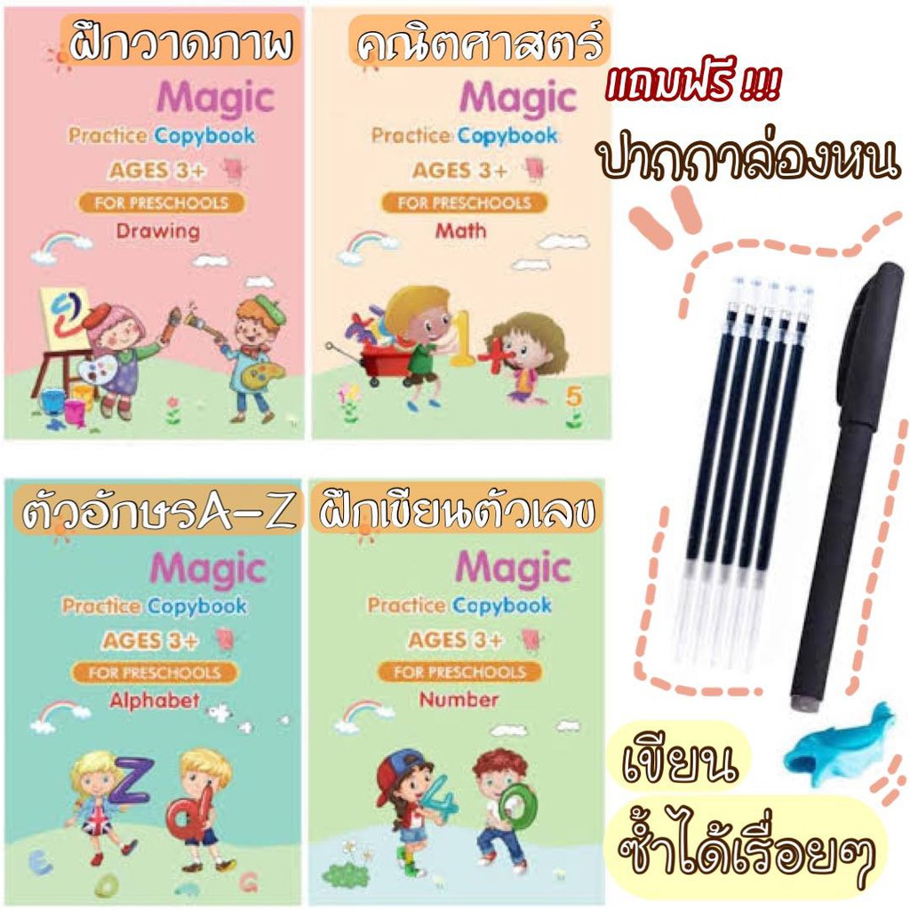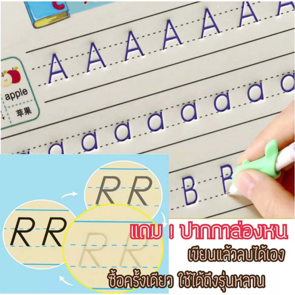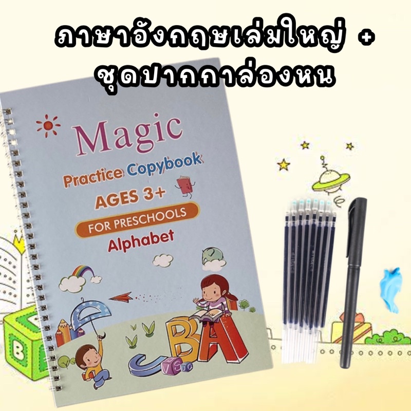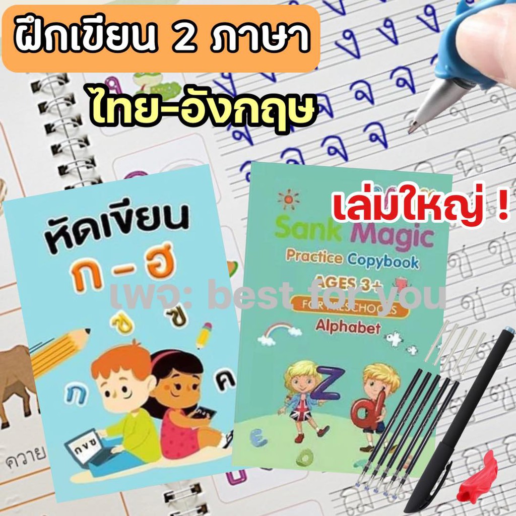 (1.1⚡️)สมุดฝึกเขียนไทย-อังกฤษ เซาะร่อง แถมปากกาล่องหน ฝึกเขียน ก ไก่ พยัญชนะไทย สระ เลขไทย