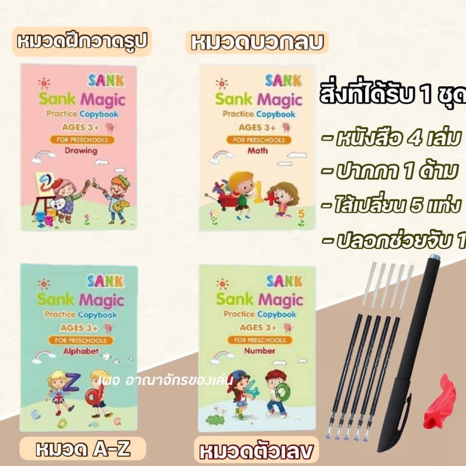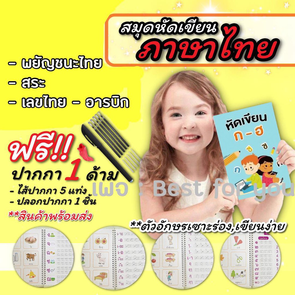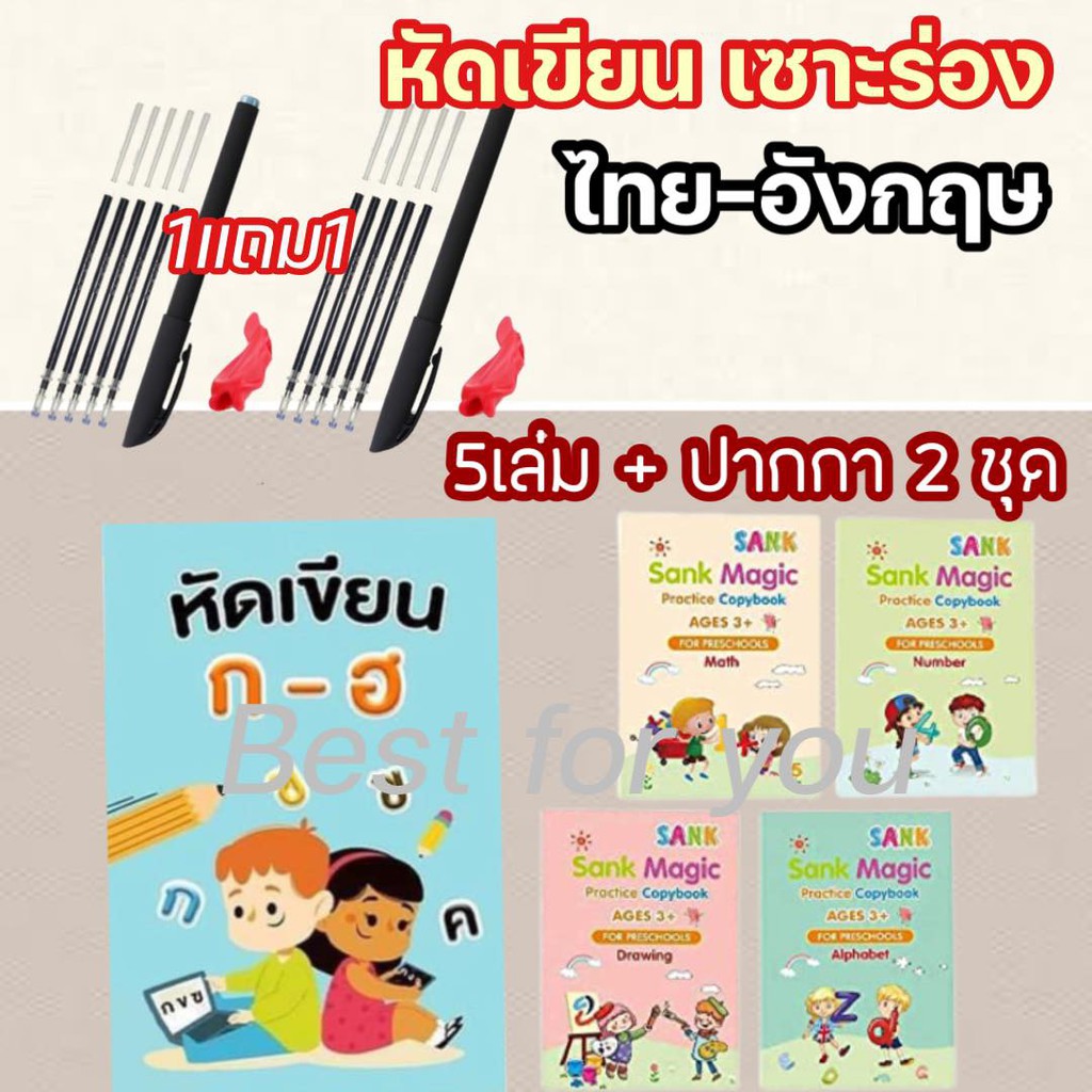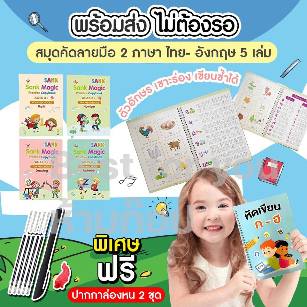 (1.1⚡️)สมุดฝึกเขียนไทย-อังกฤษ เซาะร่อง แถมปากกาล่องหน ฝึกเขียน ก ไก่ พยัญชนะไทย สระ เลขไทย