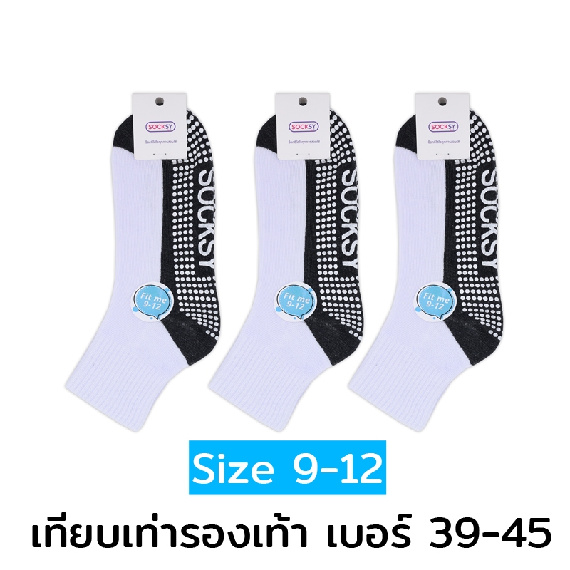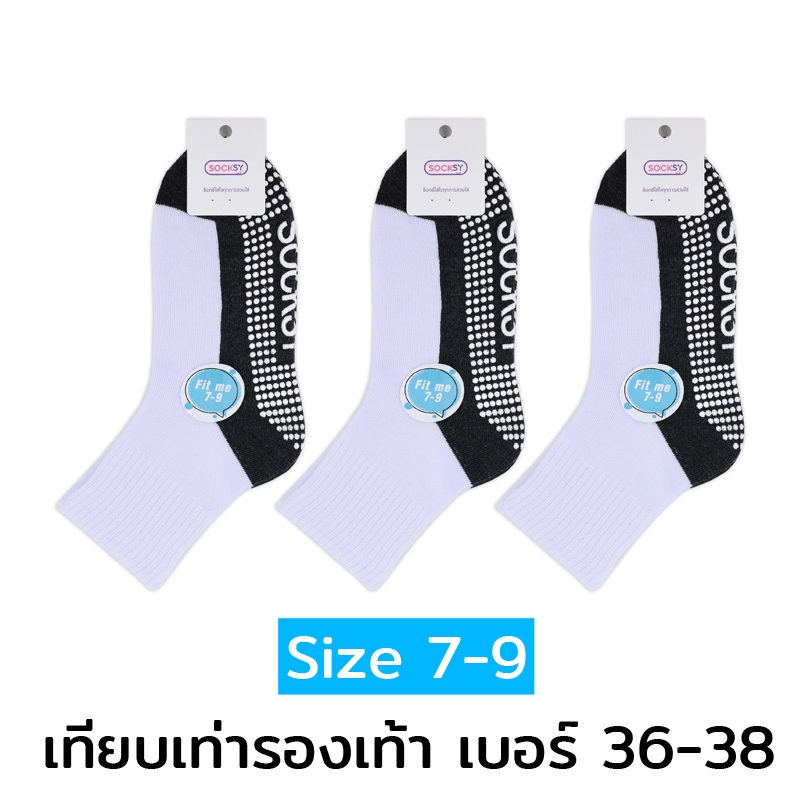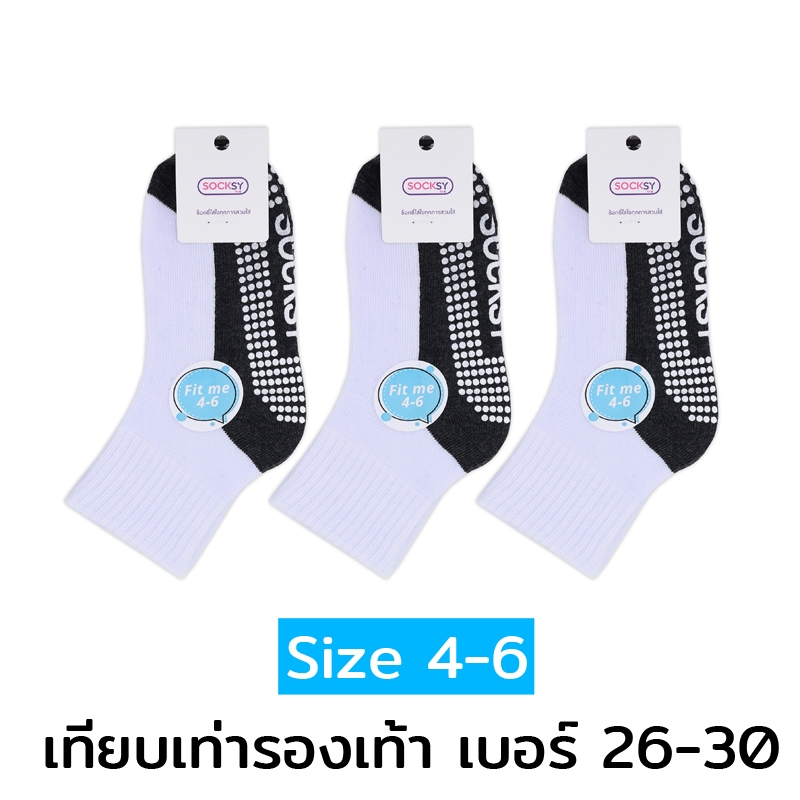 (12คู่) Socksy ถุงเท้านักเรียน ขาวพื้นเทากันลื่น มีปุ่มกันลื่นถึง 300 ปุ่ม ป้องกันอุบัติเหตุ จากการลื่นล้ม