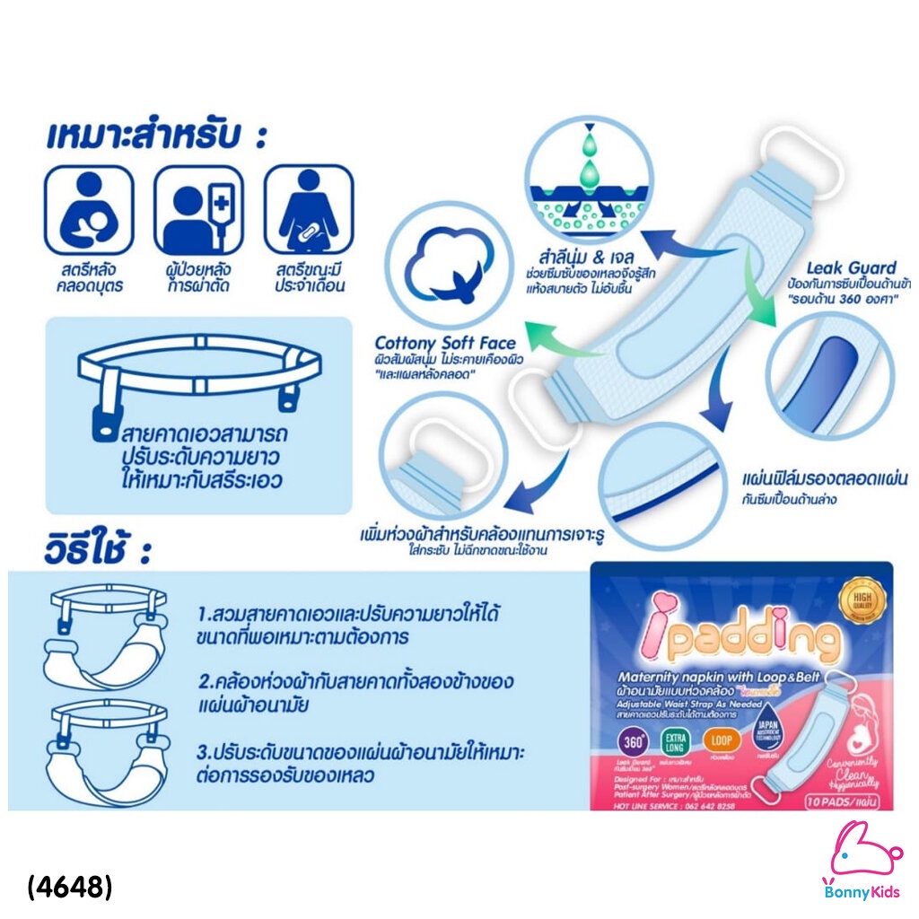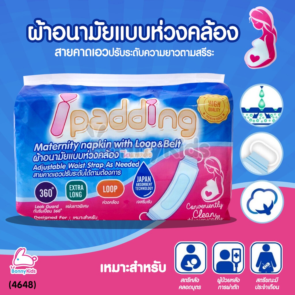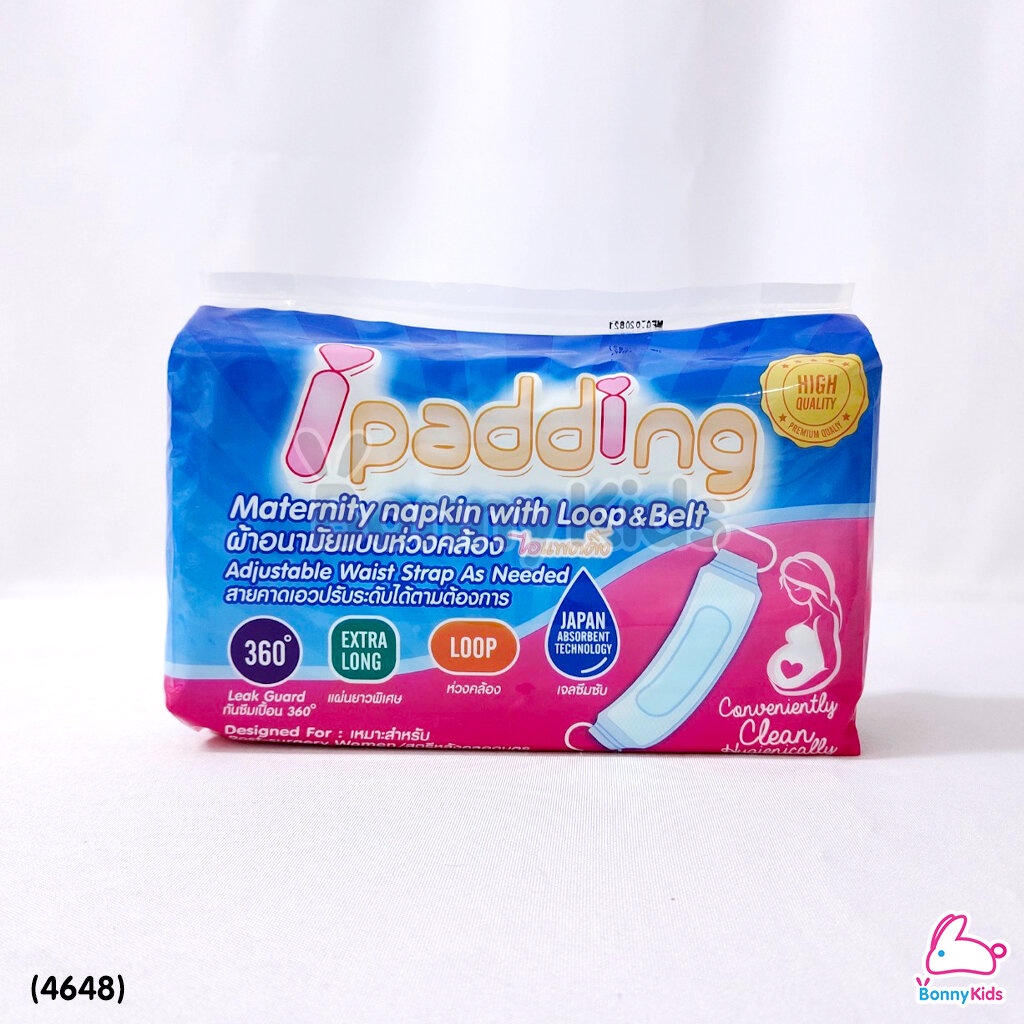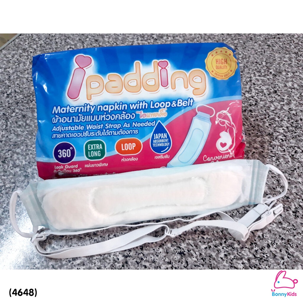 (4648) ipadding ผ้าอนามัยแบบห่วงคล้อง พร้อมสายคาดเอวปรับระดับความยาวตามสรีระ (แพ็ค 10 ชิ้น)