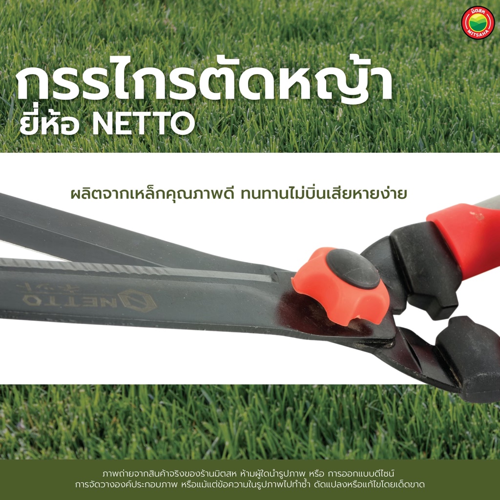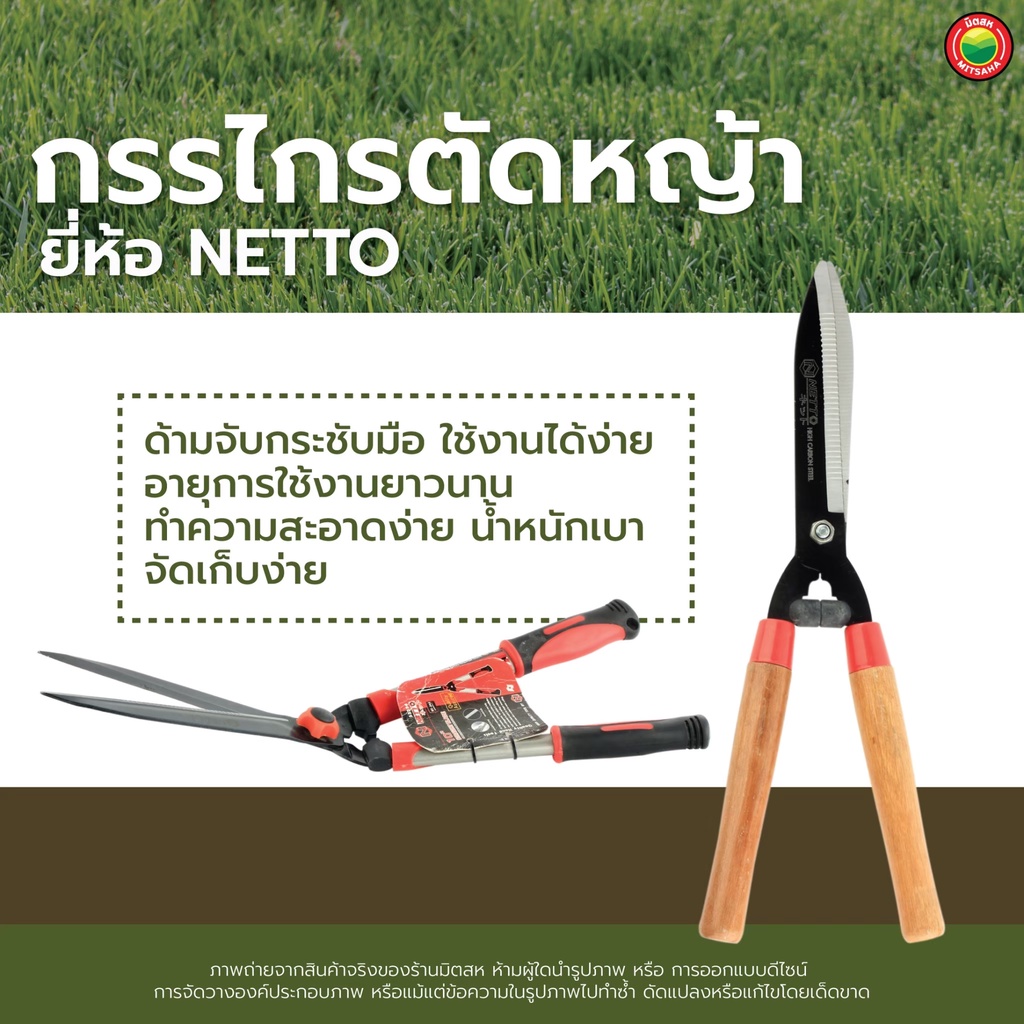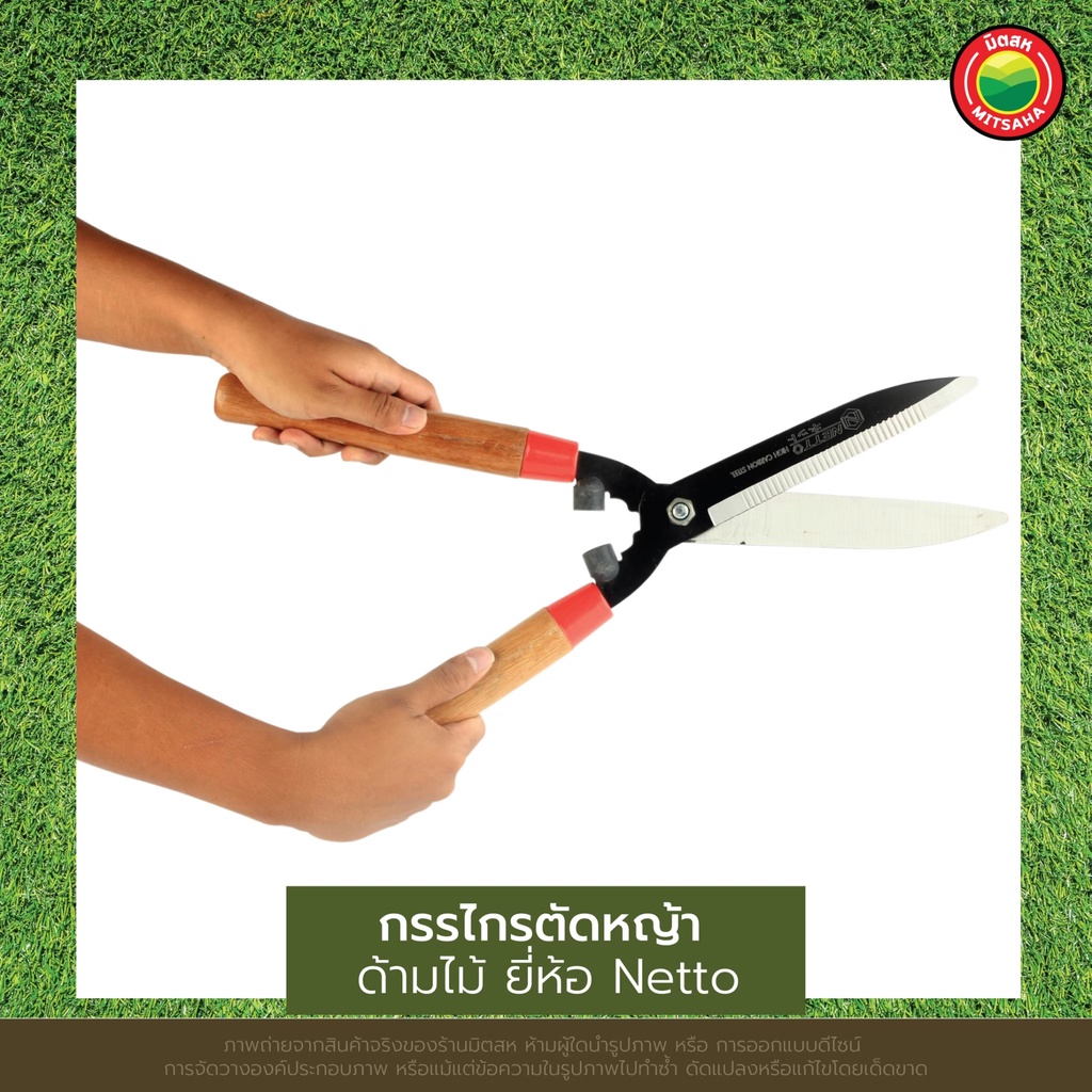 กรรไกร ตัดหญ้า Netto ขนาด 10 นิ้ว ด้าม ไม้ อลูมิเนียม หุ้มยาง HEDGE SHEAR ฟันตรง ตัด แต่ง หญ้า กิ่งไม้ พุ่มไม้ มิตสห