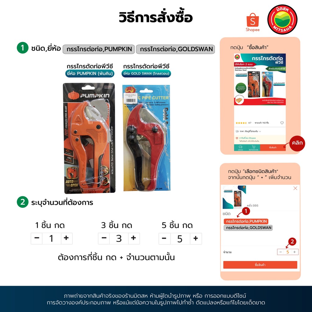 กรรไกร ตัด ท่อ พีวีซี PVC ขนาด 42 mm คีม ตัด ต่อ PVC PIPE CUTTER พัมคิน Pumpkin โกลสวอน Gold Swan ท่อ พลาสติก มิตสห