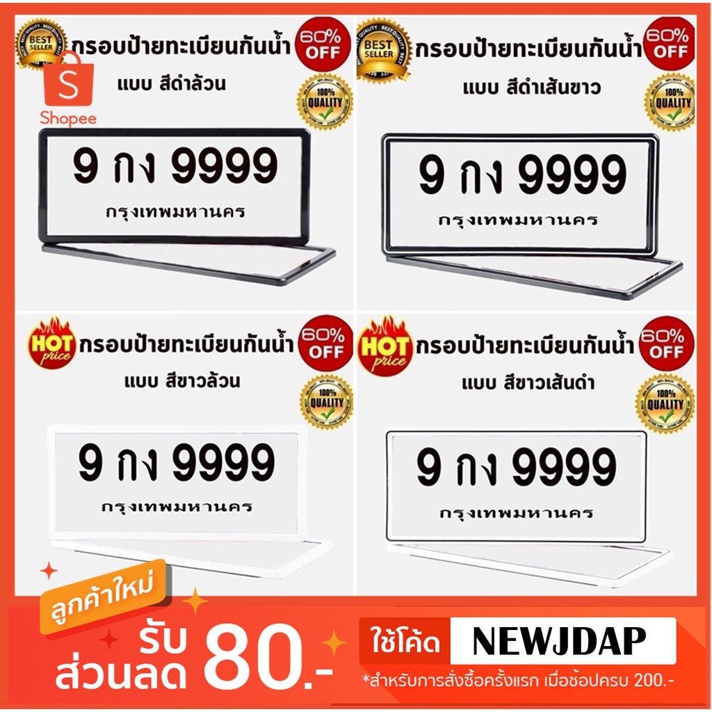 กรอบป้ายทะเบียน รถกันน้ำ 100% ทรงสปอร์ต วัสดุอย่างดี ยึดแน่น กันน้ำ สวยเท่มีระดับ กรอบป้ายทะเบียน กันน้ำ