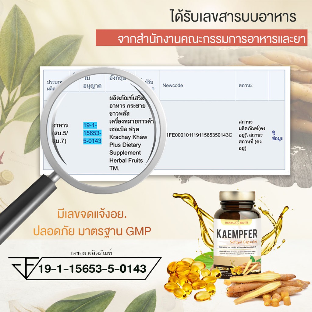 กระชายขาว 100% น้ำมันกระชายขาวสกัดเย็น 500mg ออแกนิก จำนวน 60 Gel Capsules