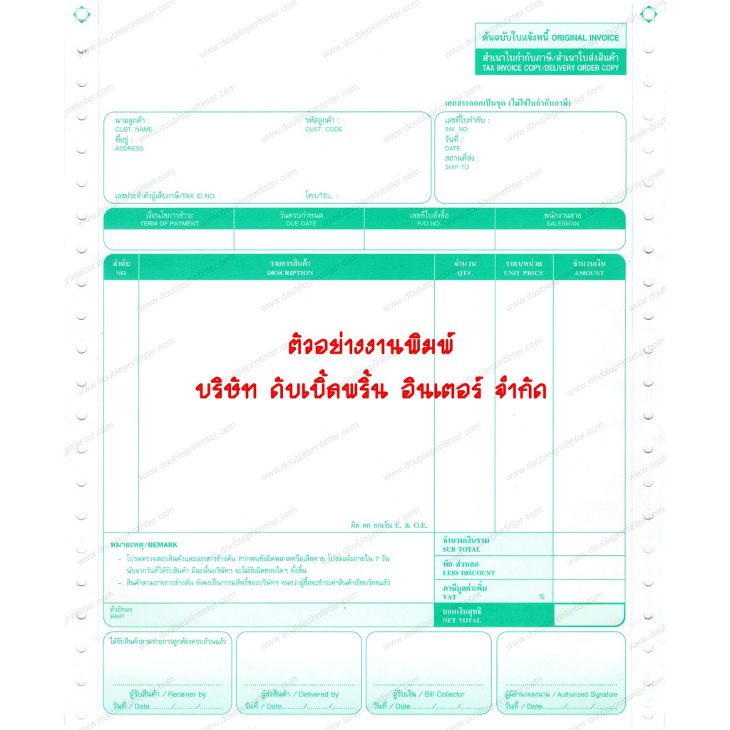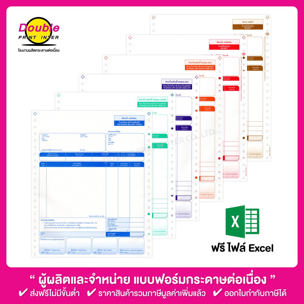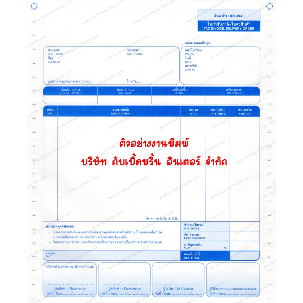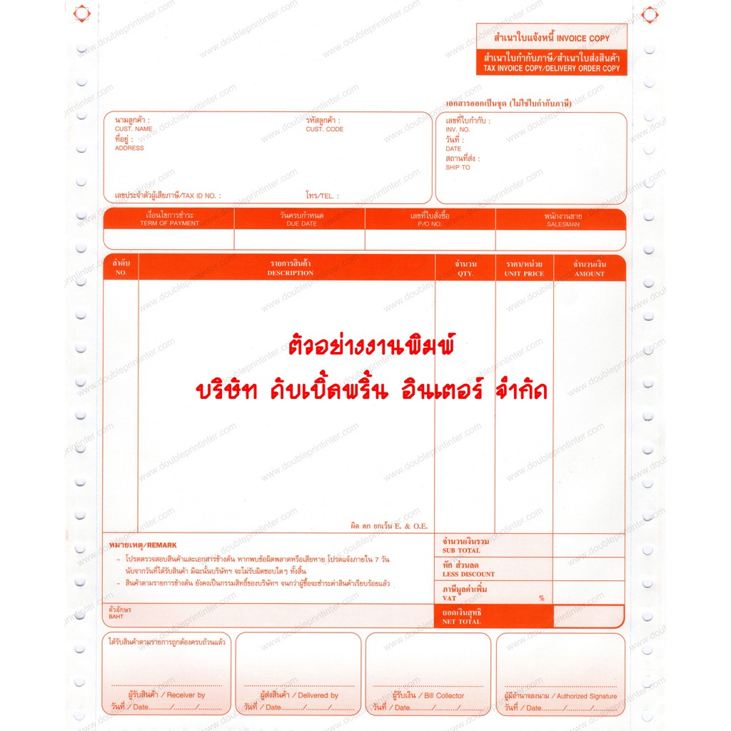 กระดาษต่อเนื่อง 6 ชั้น ขนาด 9x11 นิ้ว (ฟอร์มสำเร็จรูป) 250 ชุด ใบกำกับภาษี/ใบเสร็จรับเงิน