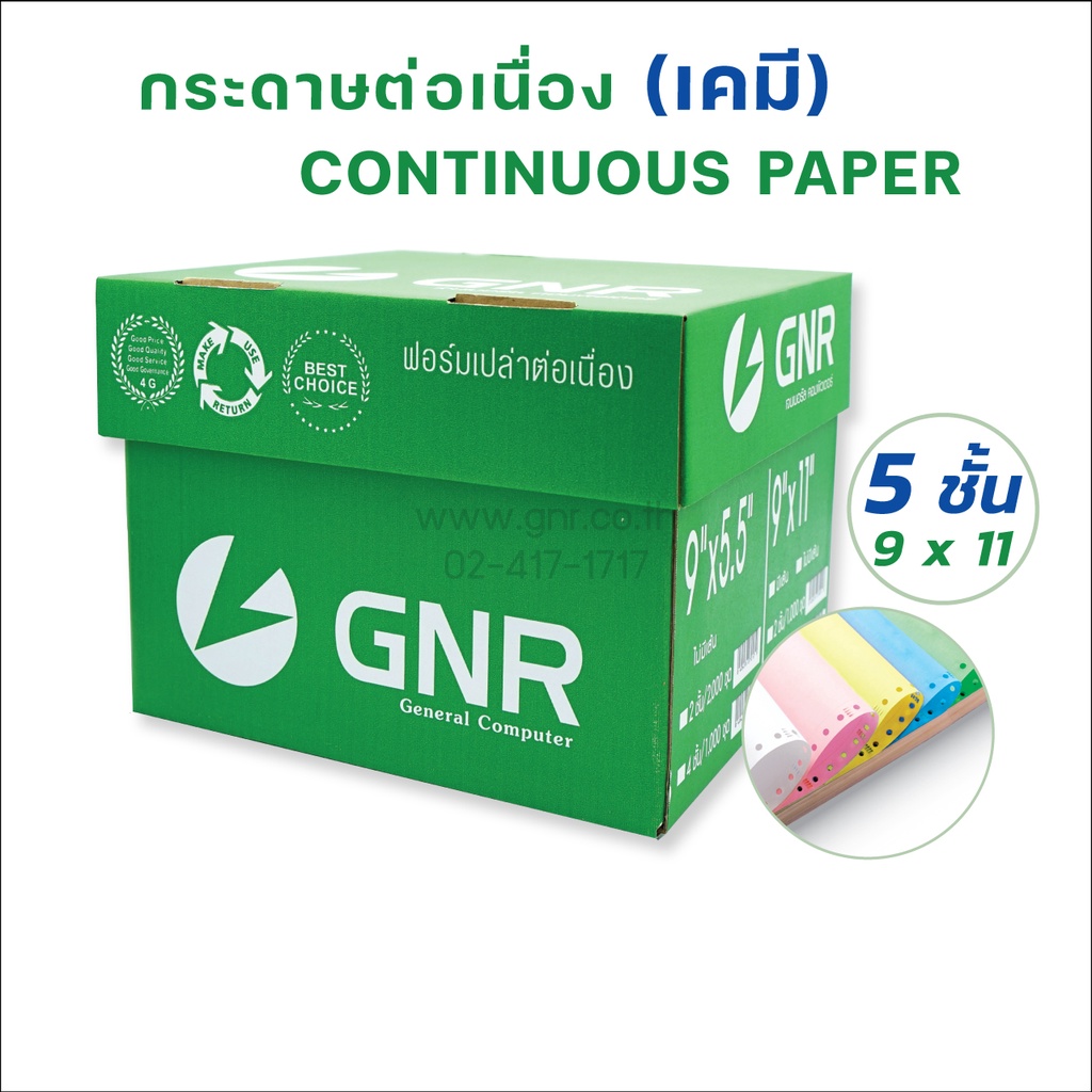 กระดาษเคมีต่อเนื่อง GNR ขนาด 9 X 11 5ชั้น ( สีขาว-ชมพู-เหลือง-ฟ้า-เขียว )