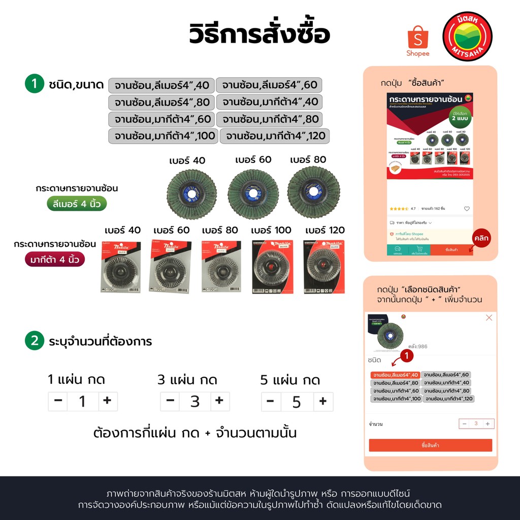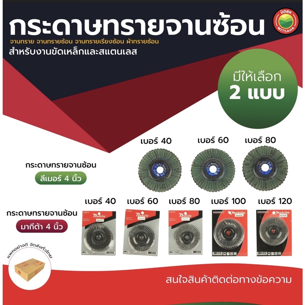 กระดาษ ทราย จาน ซ้อน ขัด หลัง แข็ง อ่อน ขนาด 4 นิ้ว RIGID FLAP DISC เบอร์ 40, 60, 80, 100, 120 ลีเมอร์ มากีต้า มิตสห