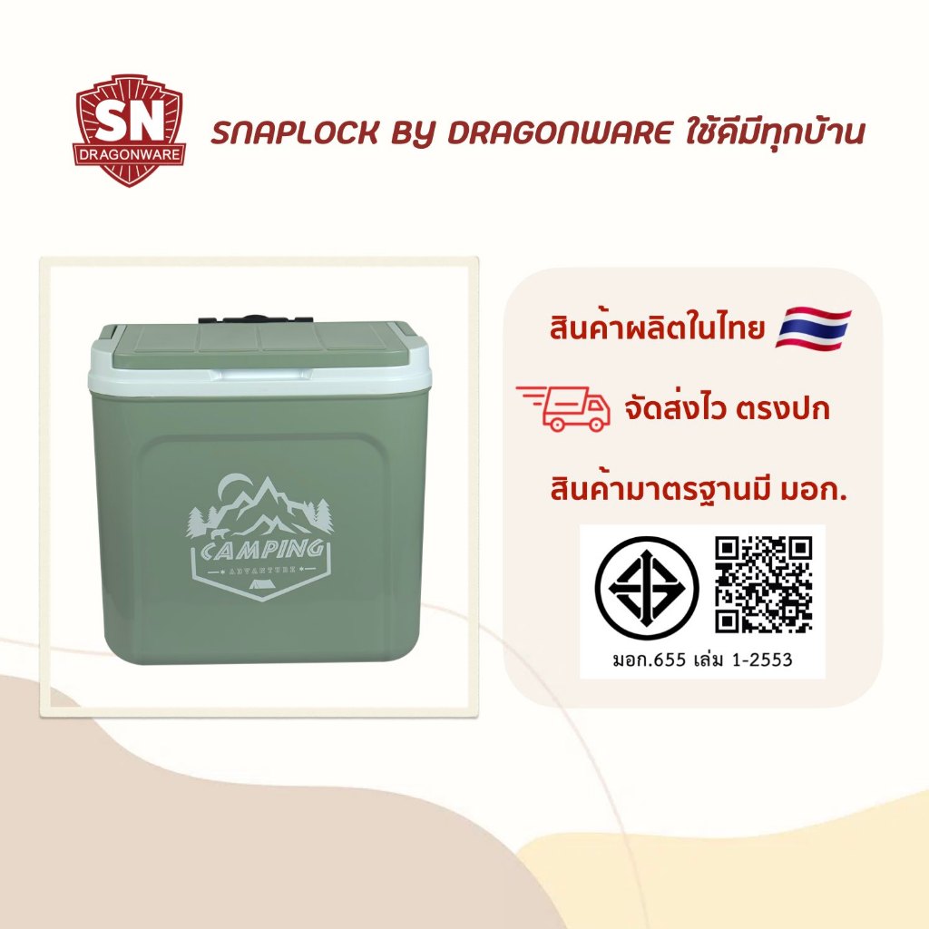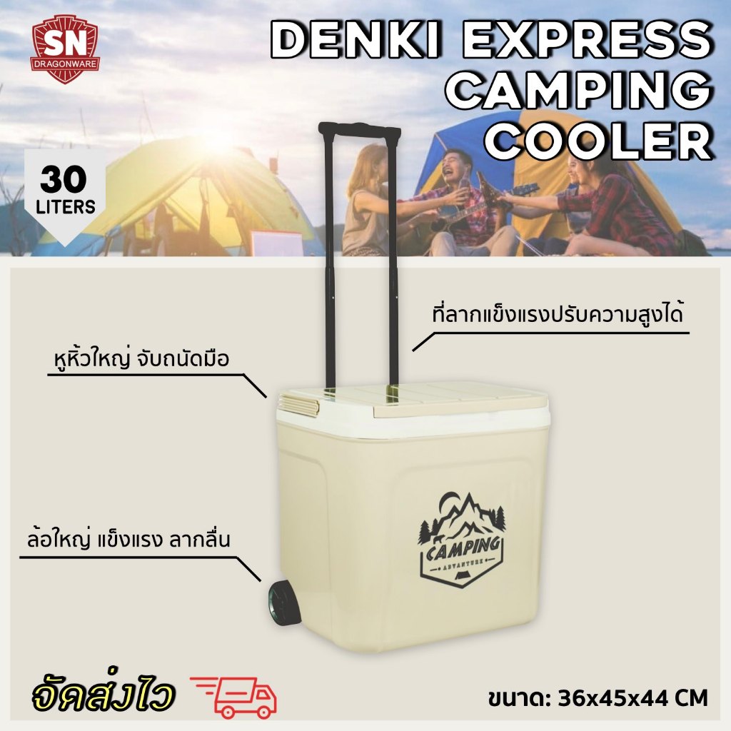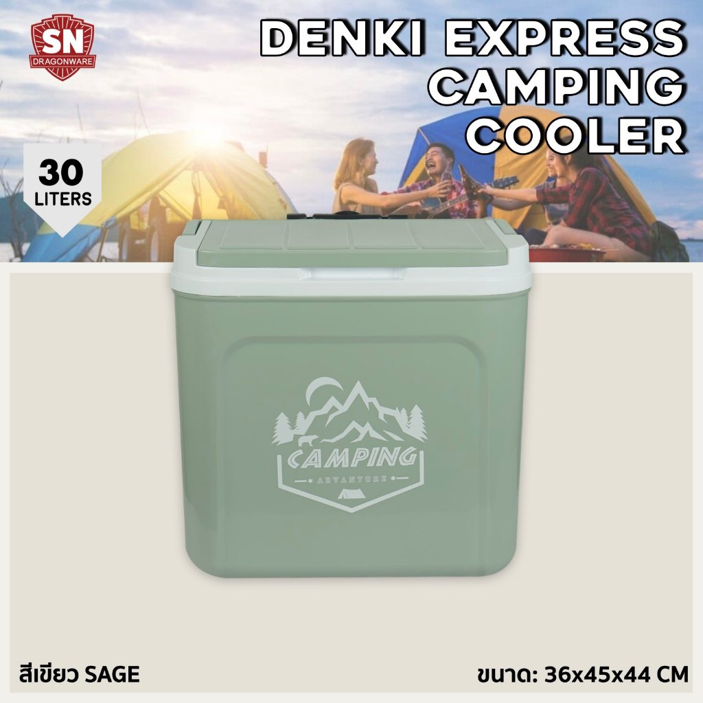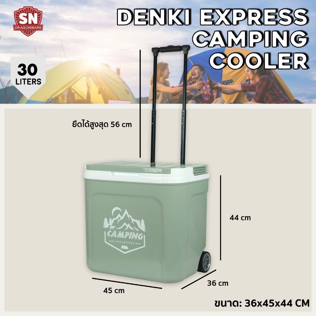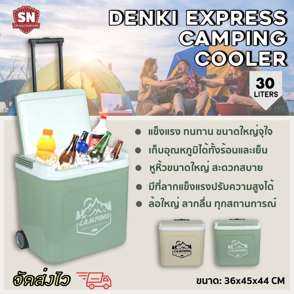 กระติก Denki Express Camping ขนาด 30 ลิตร SN DRAGON WARE (สีเขียว, สีเบจ) ขนาดพกพา และลากได้