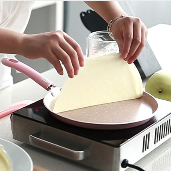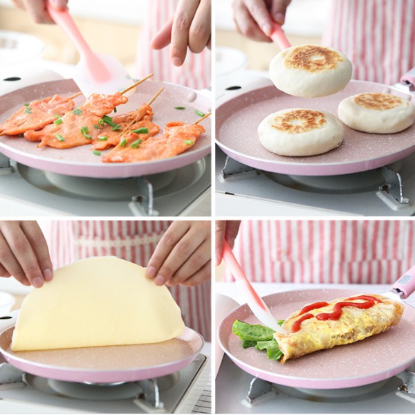 กระทะเครป สีชมพู ไม่ติดกระทะ ไม่ต้องใช้น้ำมัน สามารถใช้กับเตาแม่เหล็กไฟฟ้าได้ เครป แพนเค้ก โตเกียว