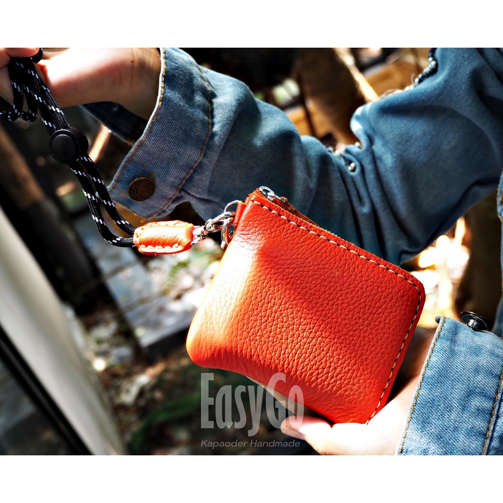 ใส่ Code:FEBKPD30 กระเป๋าตังค์รุ่นEasy-go พร้อมสาย ขนาด 11 cm × 9.5cm กระเป๋าหนังวัวแท้แฮนด์เมด