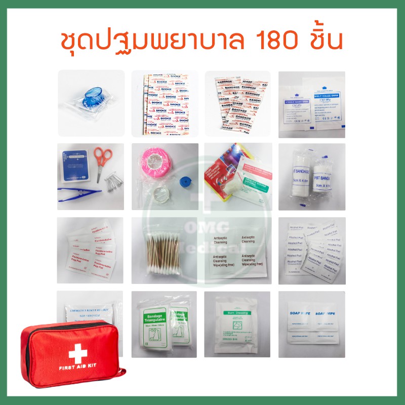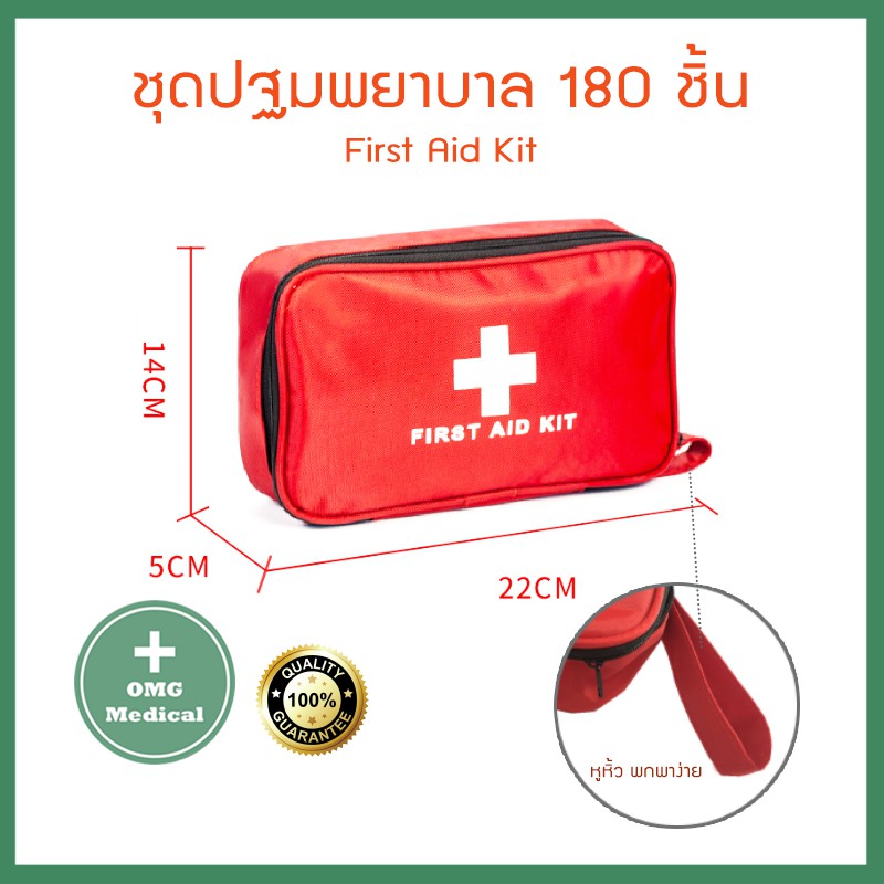 กระเป๋าพยาบาล พร้อมอุปกรณ์ 180 ชิ้น First Aid Kit Set ชุดปฐมพยาบาลเบื้องต้น ชุดทำแผลพกพา ปฐมพยาบาล