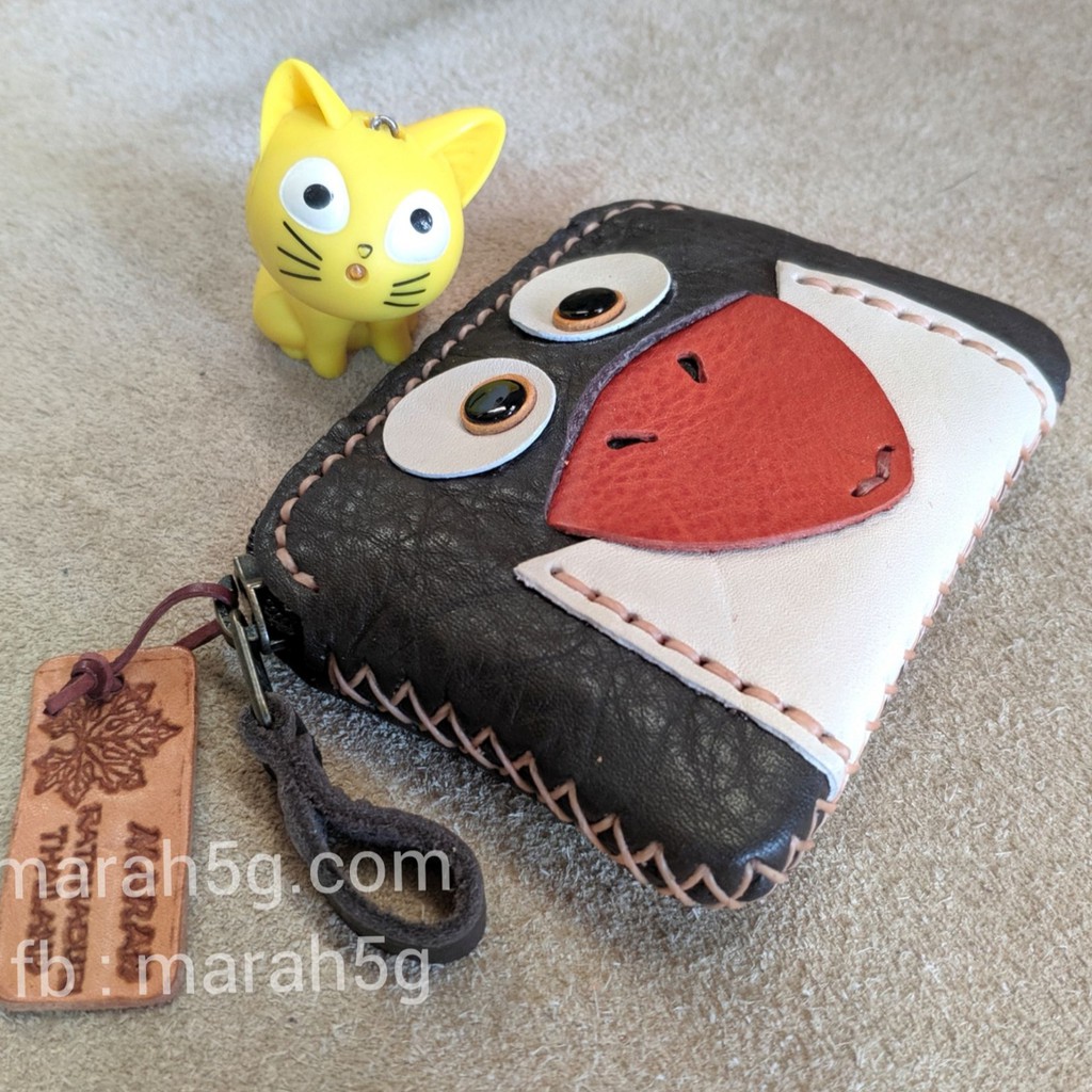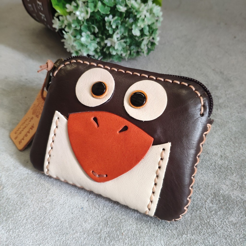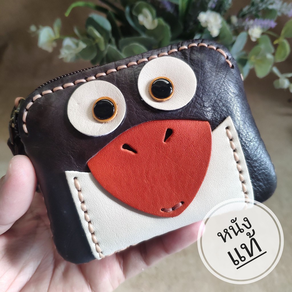 กระเป๋าหนังแท้รูปเพนกวินสำหรับใส่เหรียญและบัตร ATM ดีไซน์น่ารัก ทำจากหนังวัวงานแฮนด์เมด ราคาย่อมเยา