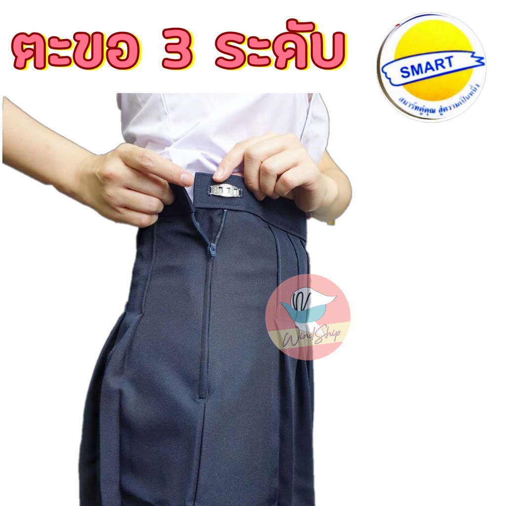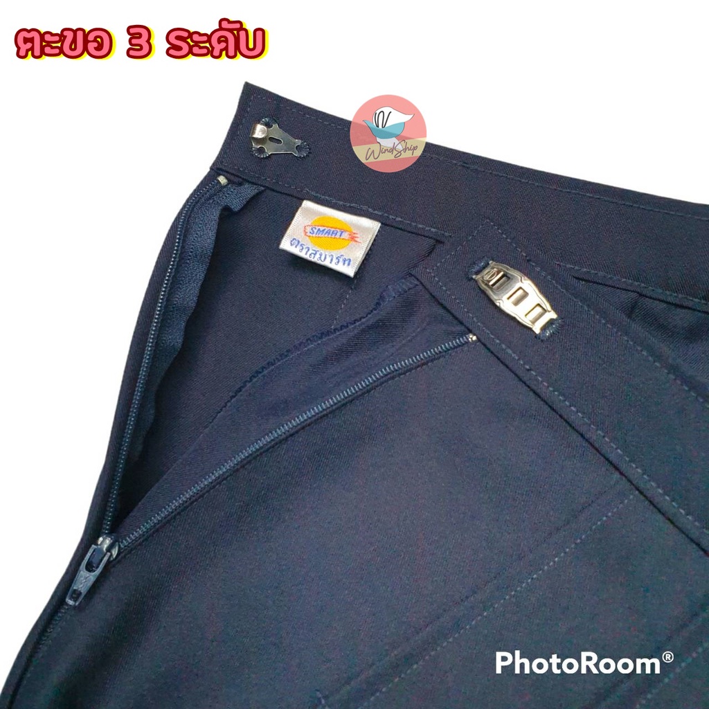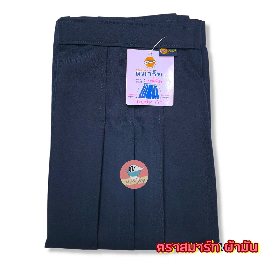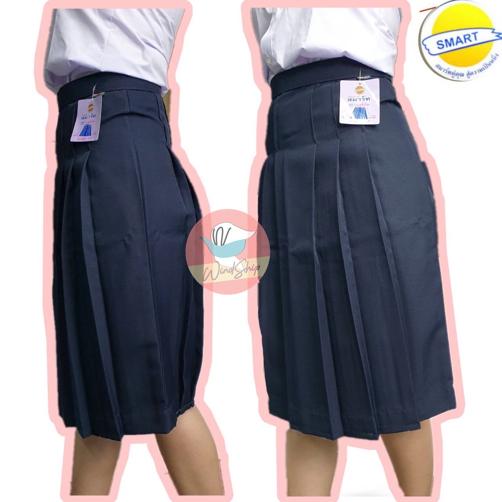 กระโปรงนักเรียน กระโปรงทรงแคบ ตราสมาร์ท SMART "กระเป๋าเจาะ" ผ้ามันลีวาย สีกรมท่าเข้ม