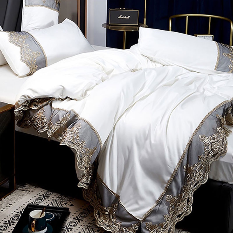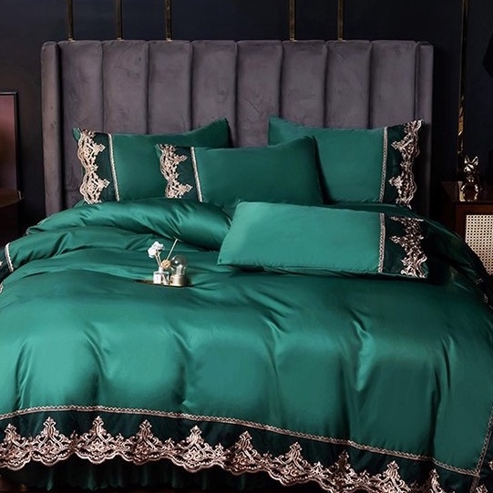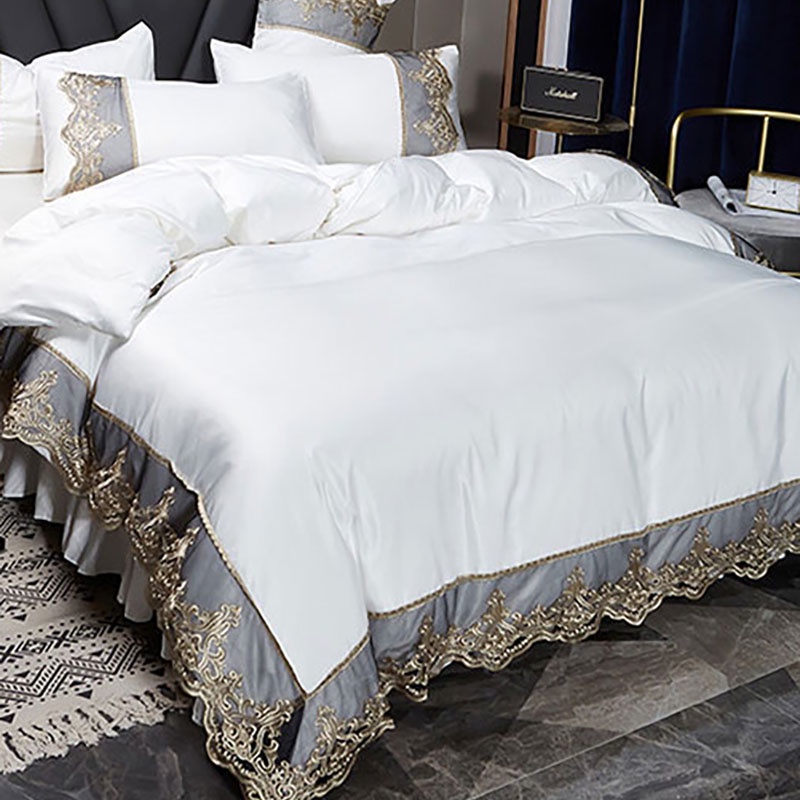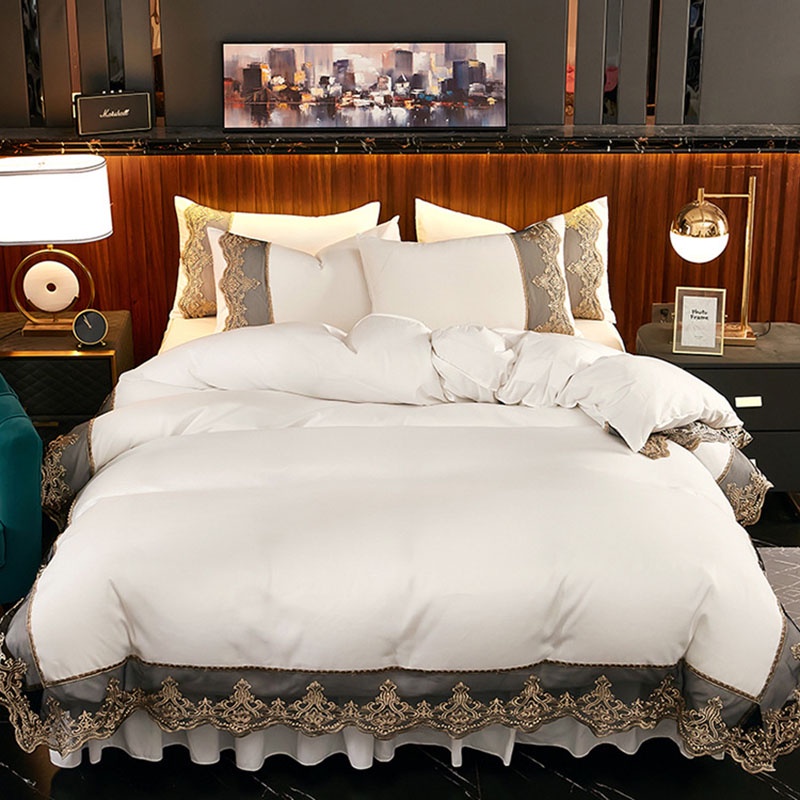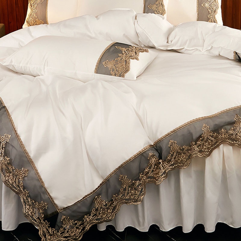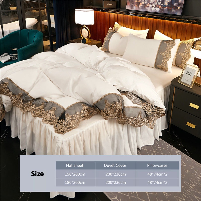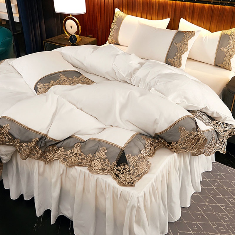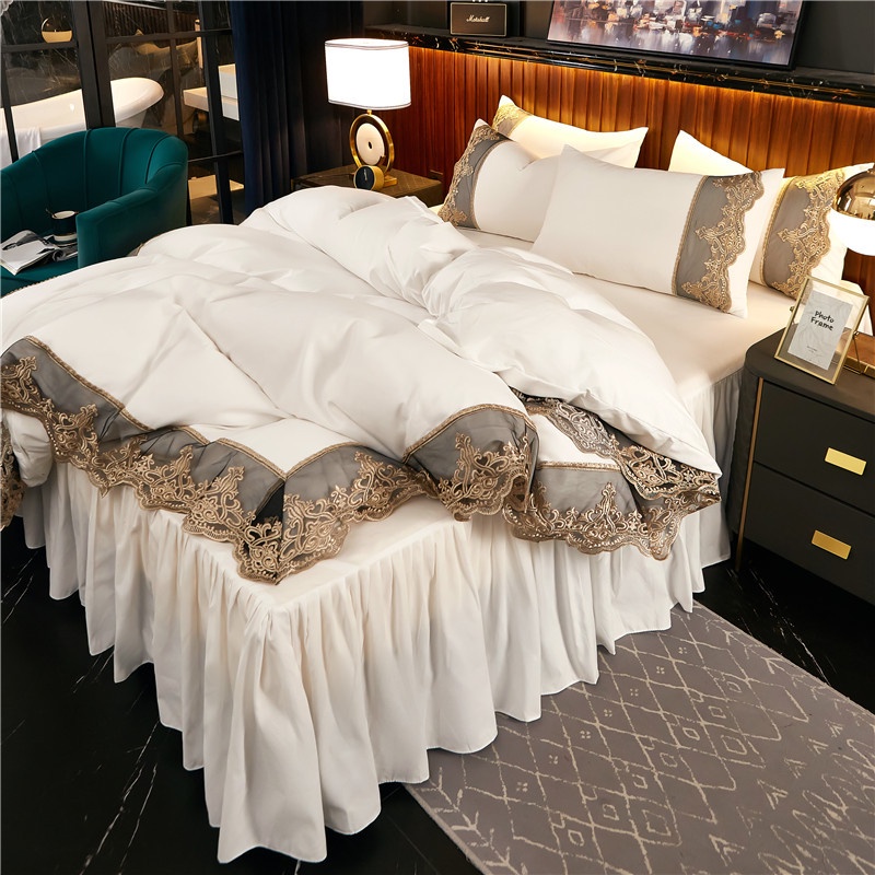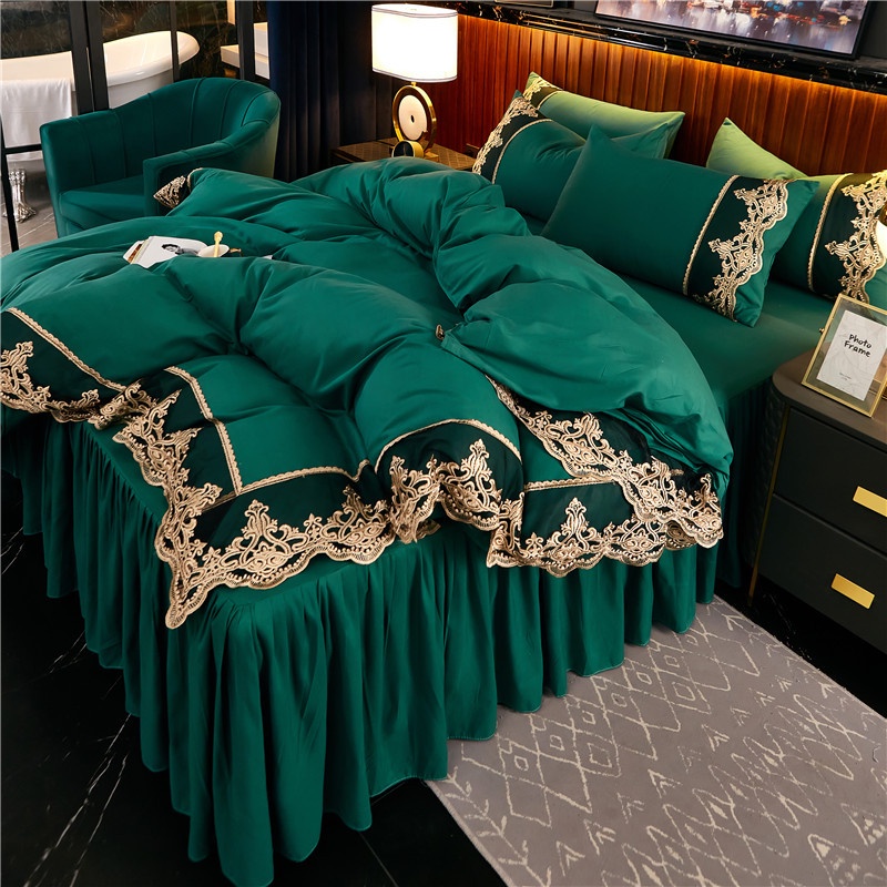 กระโปรงผ้าปูที่นอนผ้าลูกไม้สีแดงสุทธิ Tencel ชุดสามหรือสี่ชิ้น