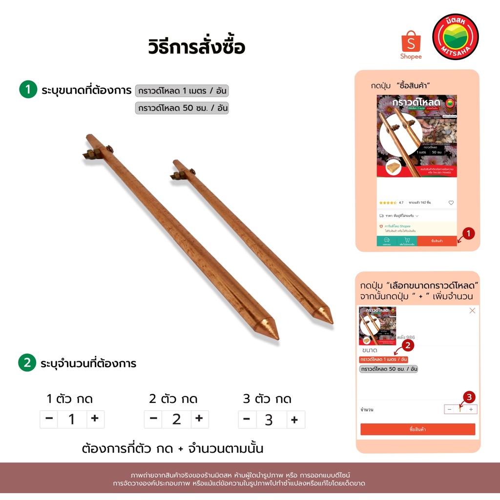 กราวด์โหลด แท่งกราวด์ ขนาด 50, 100 เซนติเมตร GROUND ROD ขายเป็นแท่ง แท่งกราวด์โหลด แคล้มทองเหลือง กาวโหลดชุบทองแดง มิตสห