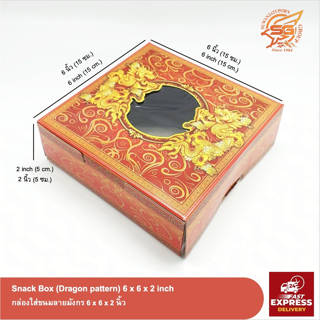 กล่องขนม กล่องลายมังกร กล่องสีแดง สำหรับตรุษจีน แพ็ค 20ใบ