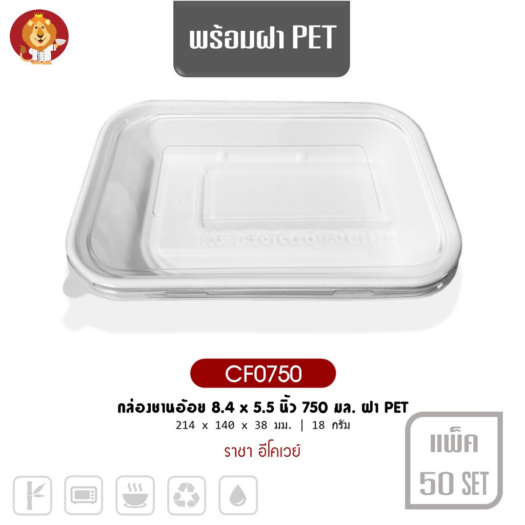 กล่องชานอ้อย 8.4 x 5.5 นิ้ว 750 มล. สีขาว ฝา PET [ CF0750 ] แบรนด์ ราชา Ecoway (50 ชุดพร้อมฝา)