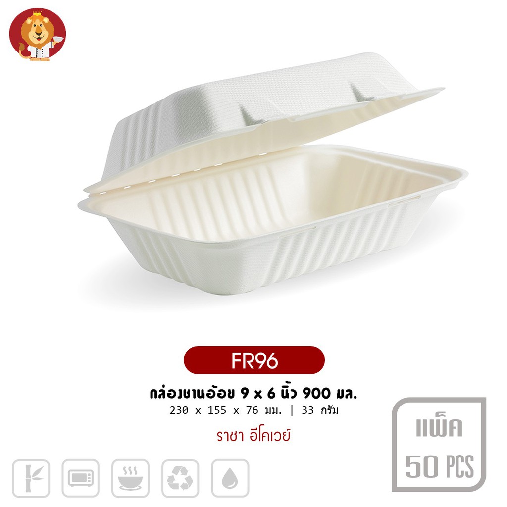 กล่องชานอ้อย 9 x 6 นิ้ว 900 มล. สีขาว [ FR96 ] แบรนด์ ราชา Ecoway (50 ชิ้นต่อแพ็ค)