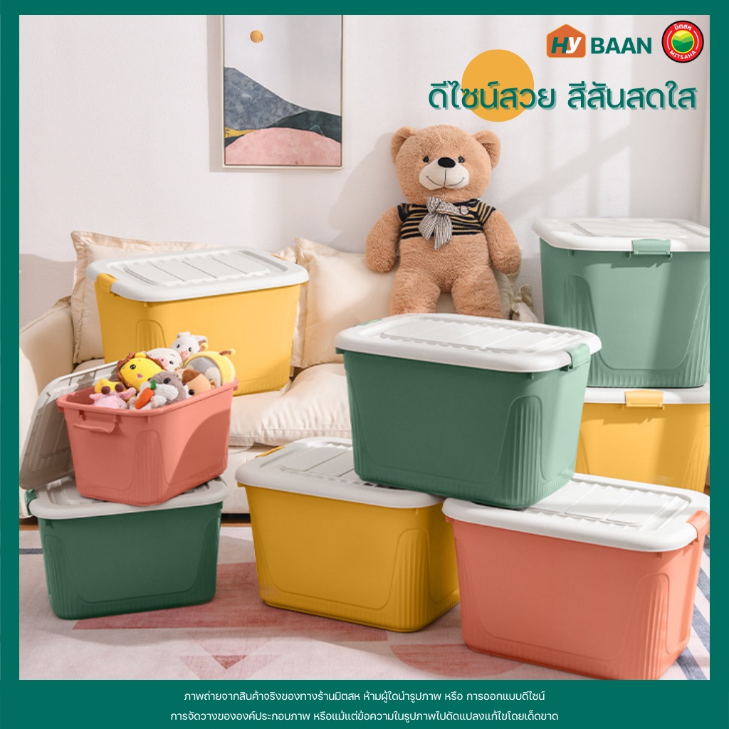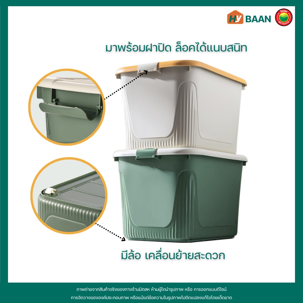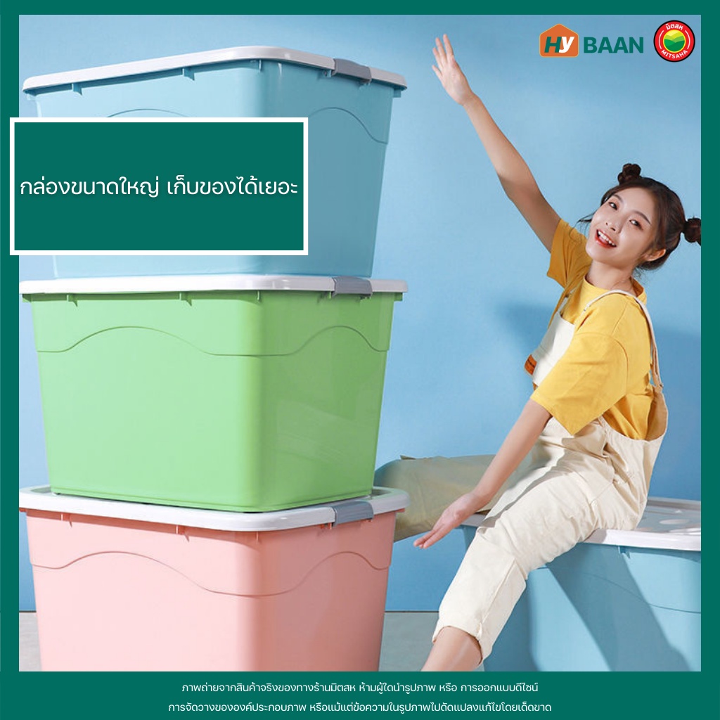 กล่องพลาสติกเก็บของ ขนาดใหญ่ large plastic storage box มี 4สี, 2ขนาด กล่อง ลัง พลาสติก เก็บของ ฝาล็อก มีล้อ มิตสห Hybaan