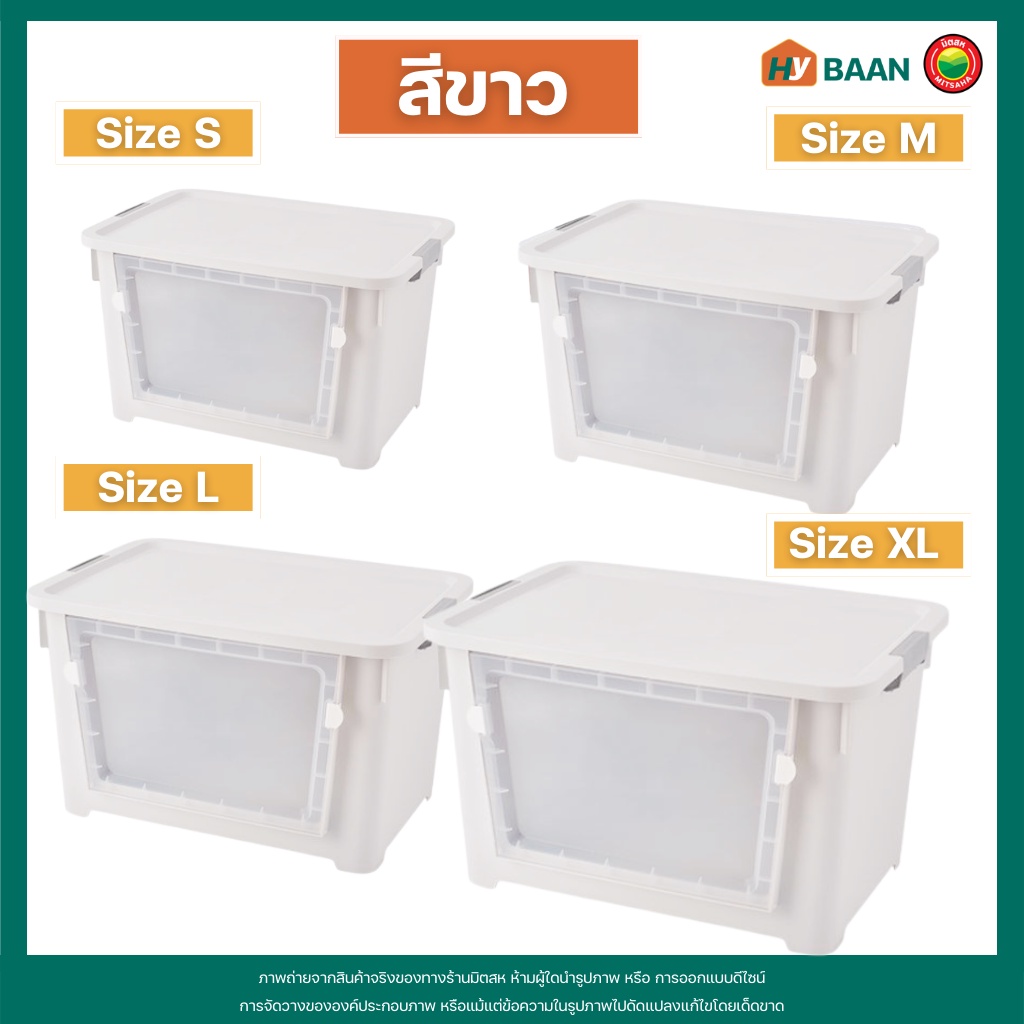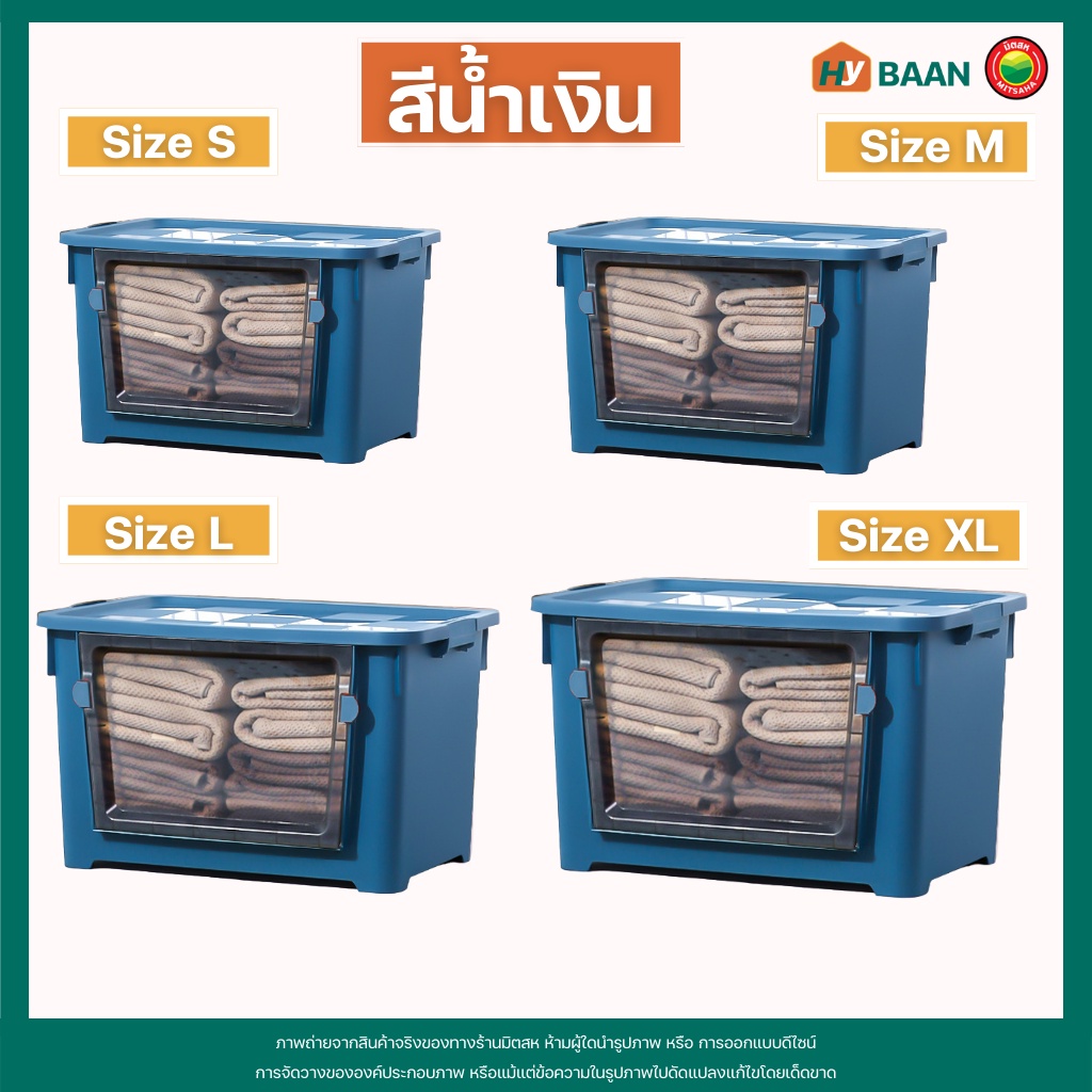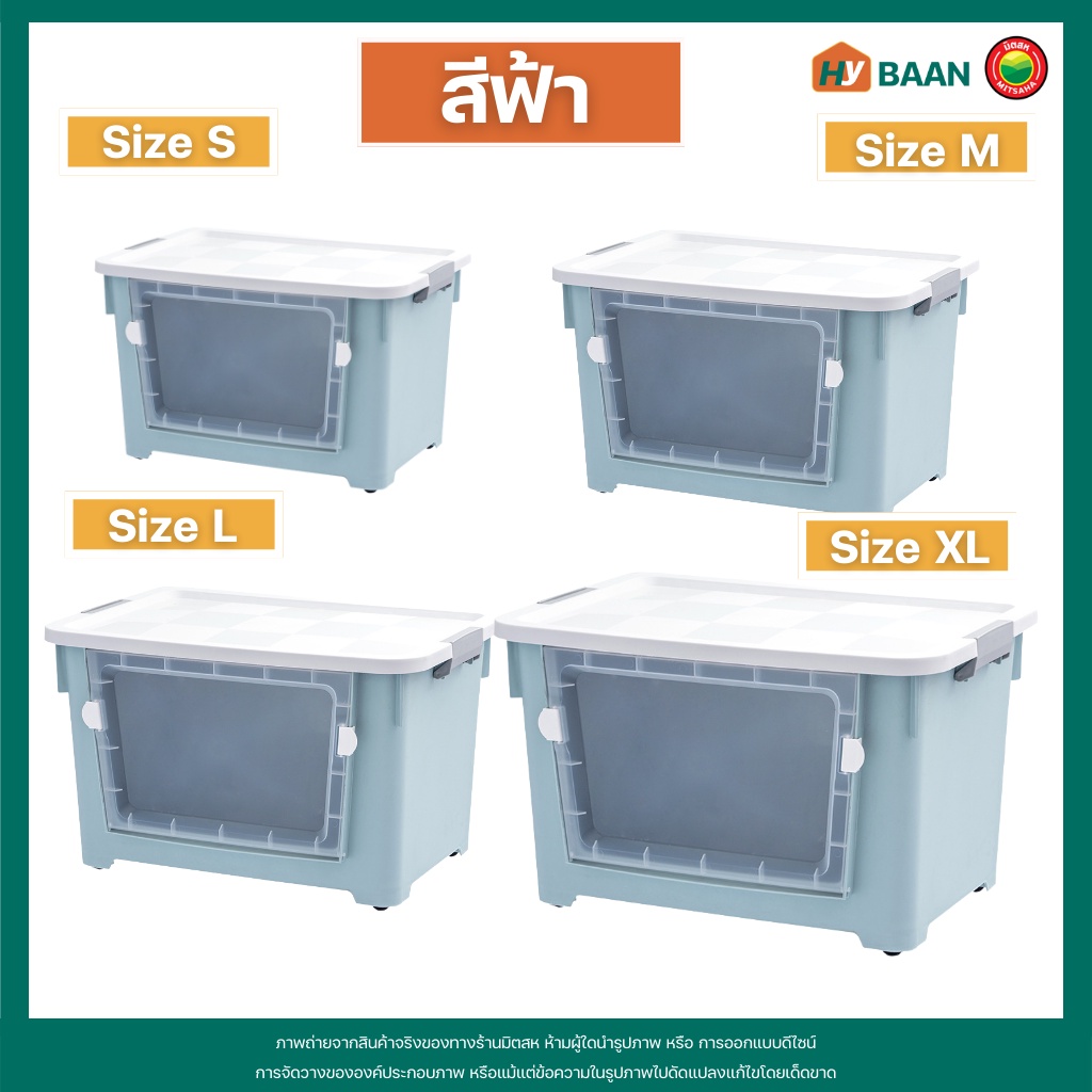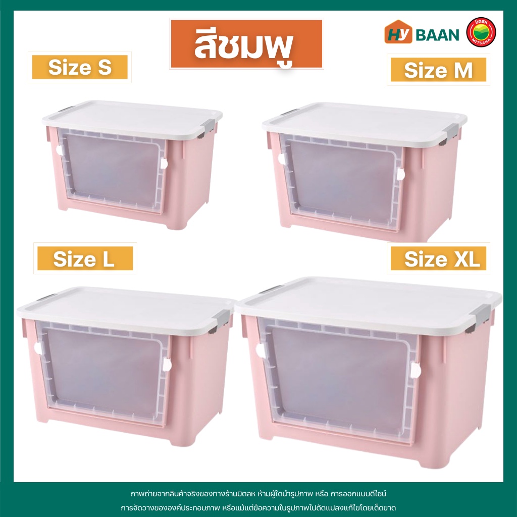 กล่องเก็บของ แบบเปิดฝาหน้า 7 สี, 4 ขนาด front open storage box กล่อง พลาสติก ฝาหน้า ฝาล็อก มีล้อ จัดระเบียบ มิตสห Hybaan
