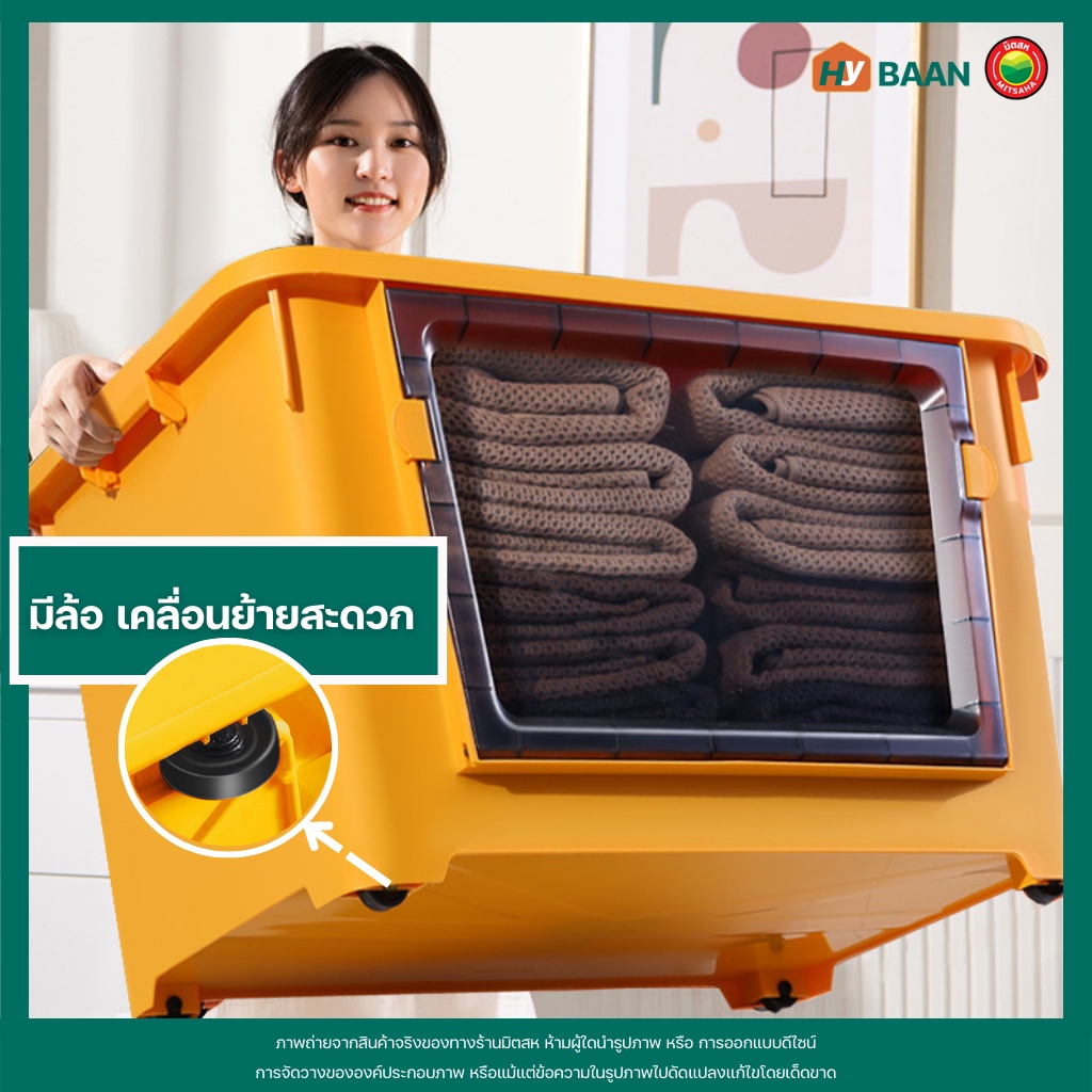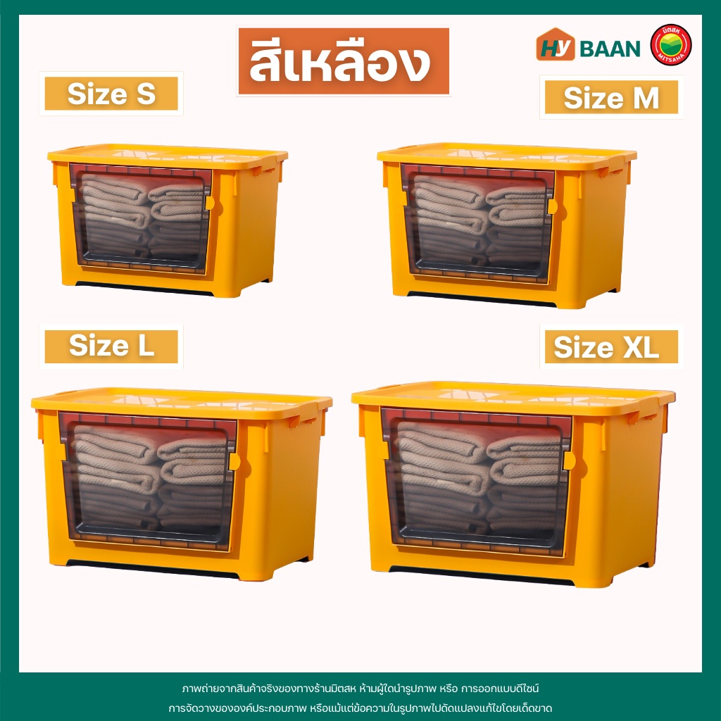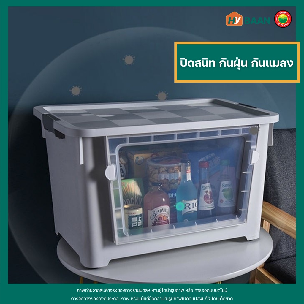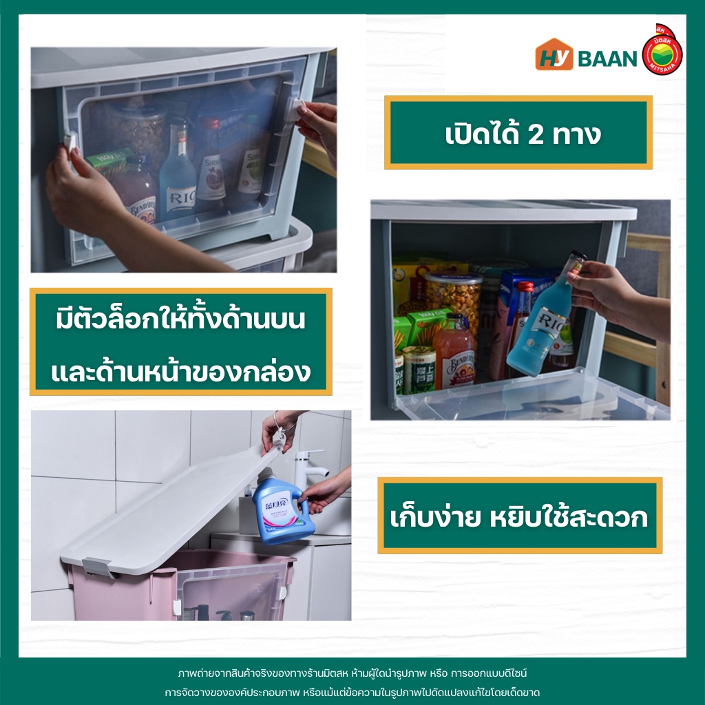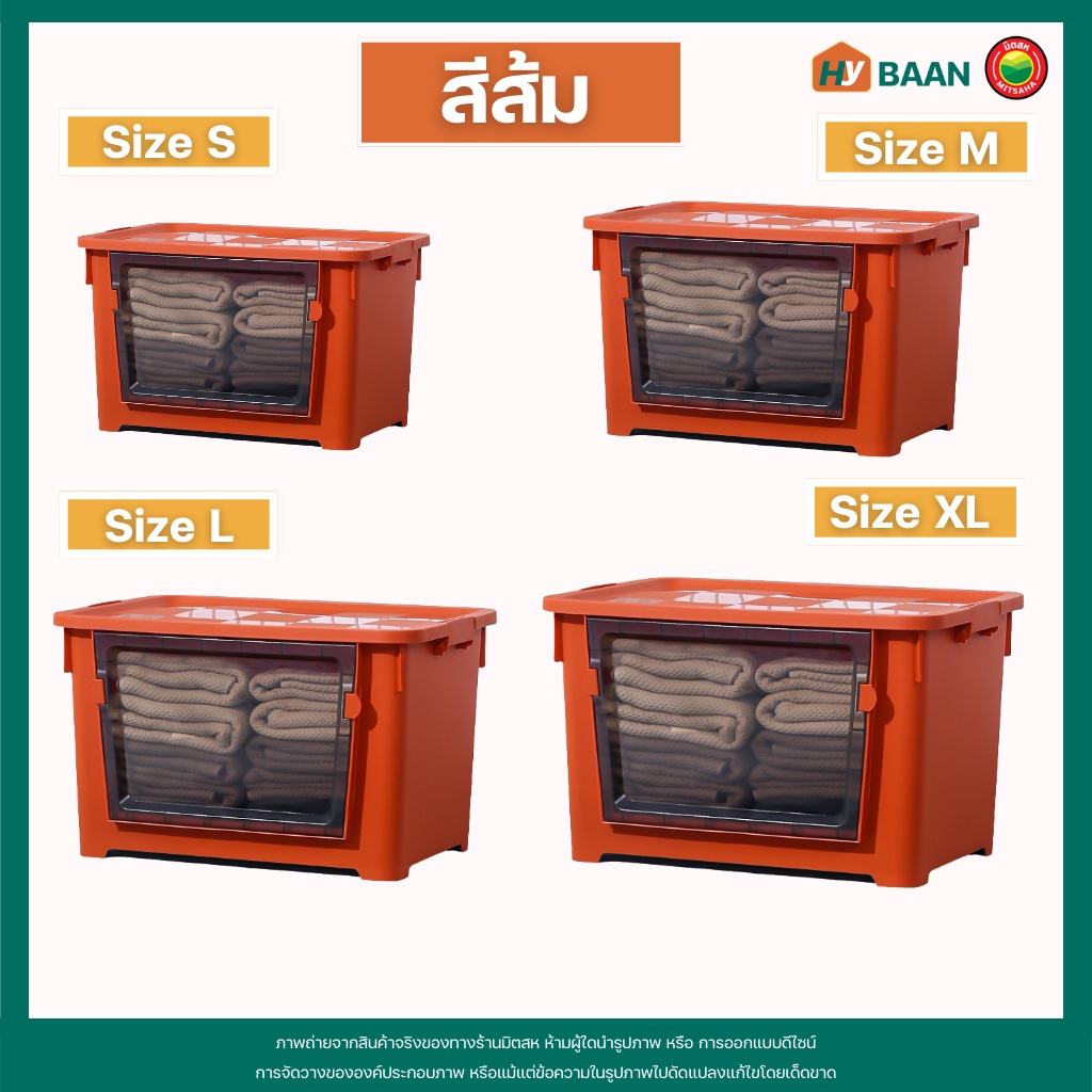 กล่องเก็บของ แบบเปิดฝาหน้า 7 สี, 4 ขนาด front open storage box กล่อง พลาสติก ฝาหน้า ฝาล็อก มีล้อ จัดระเบียบ มิตสห Hybaan