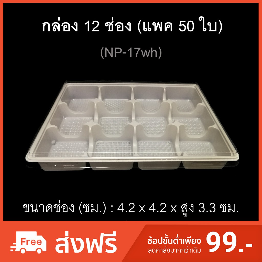 กล่อง12ช่อง บรรจุภัณฑ์พลาสติก 12ช่อง รหัสNP-17+ฝาใส (แพค50ใบ)