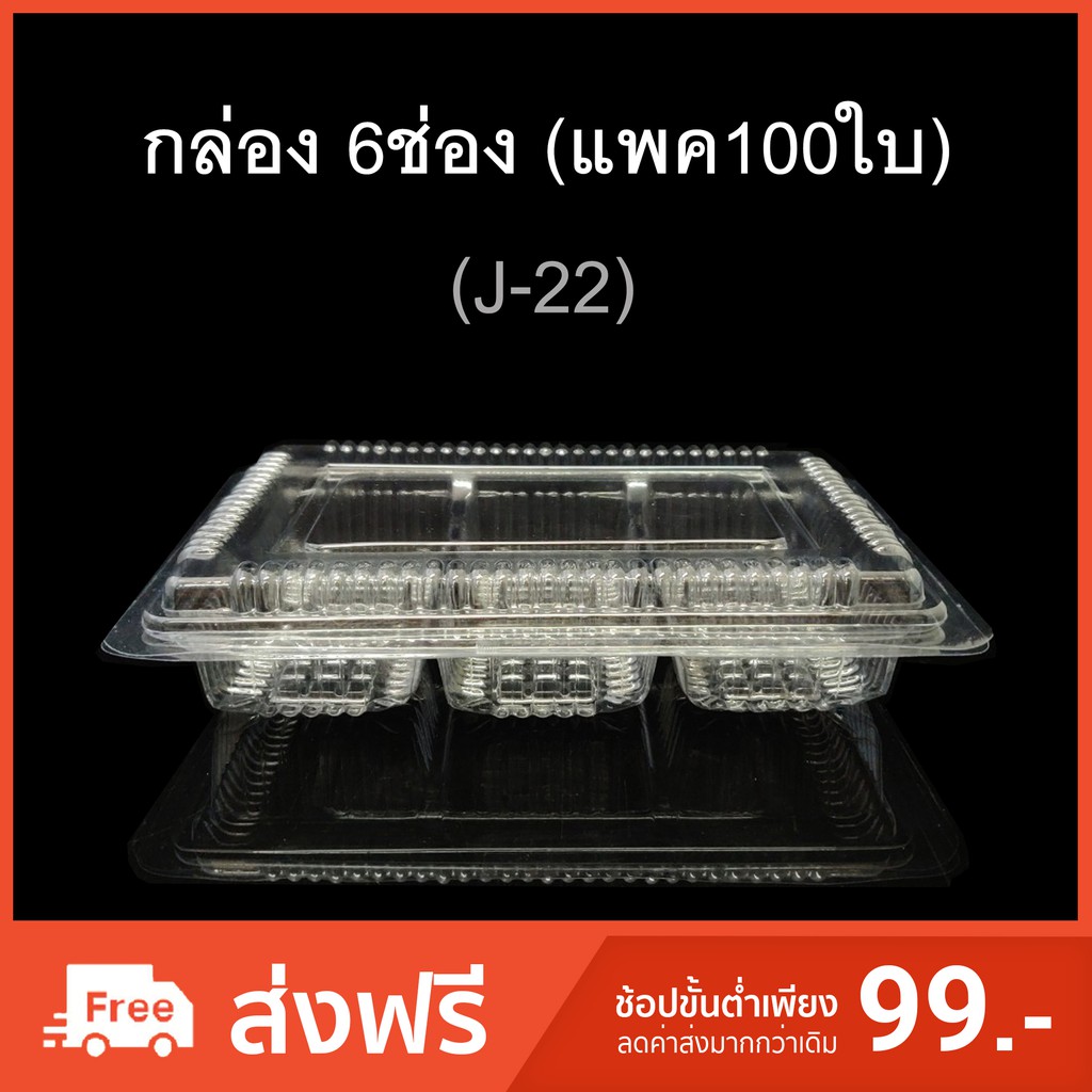 กล่อง6ช่อง บรรจุภัณฑ์พลาสติก 6ช่อง รหัสJ-22 (แพค100ใบ)