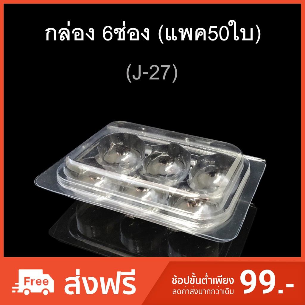 กล่อง6ช่อง บรรจุภัณฑ์พลาสติก 6ช่อง กล่องช็อคบอล รหัสJ-27 (แพค50ใบ)