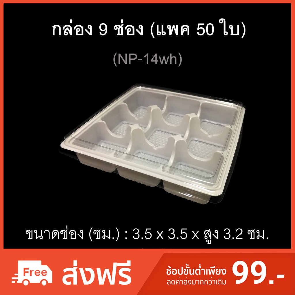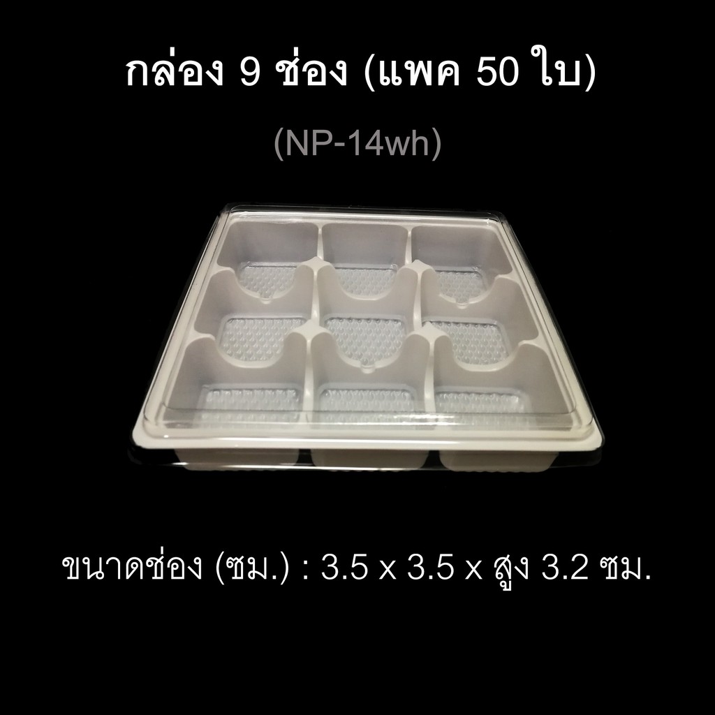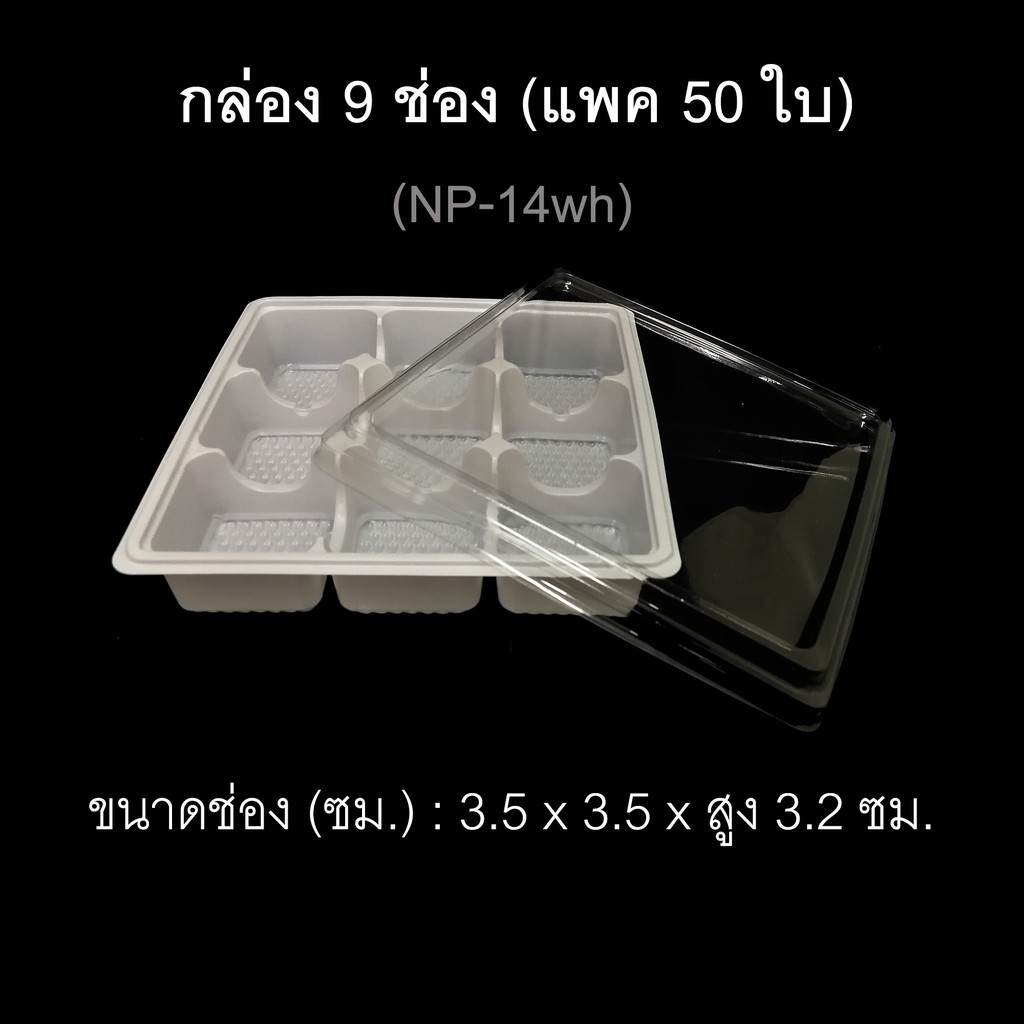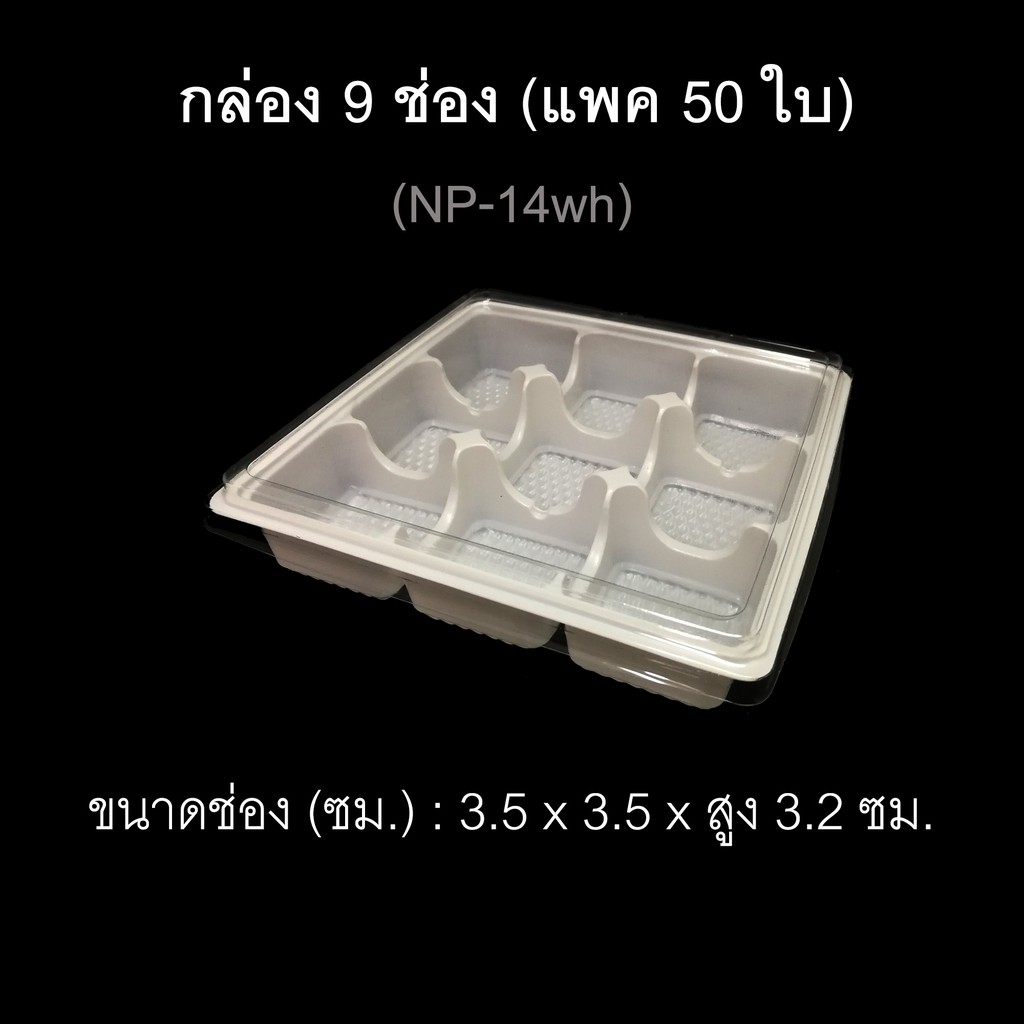 กล่อง9ช่อง บรรจุภัณฑ์พลาสติก 9ช่อง กล่องใส่ขนมเปื๊ยะ กล่องใส่โมจิ รหัสNP-14 (แพค50ใบ)