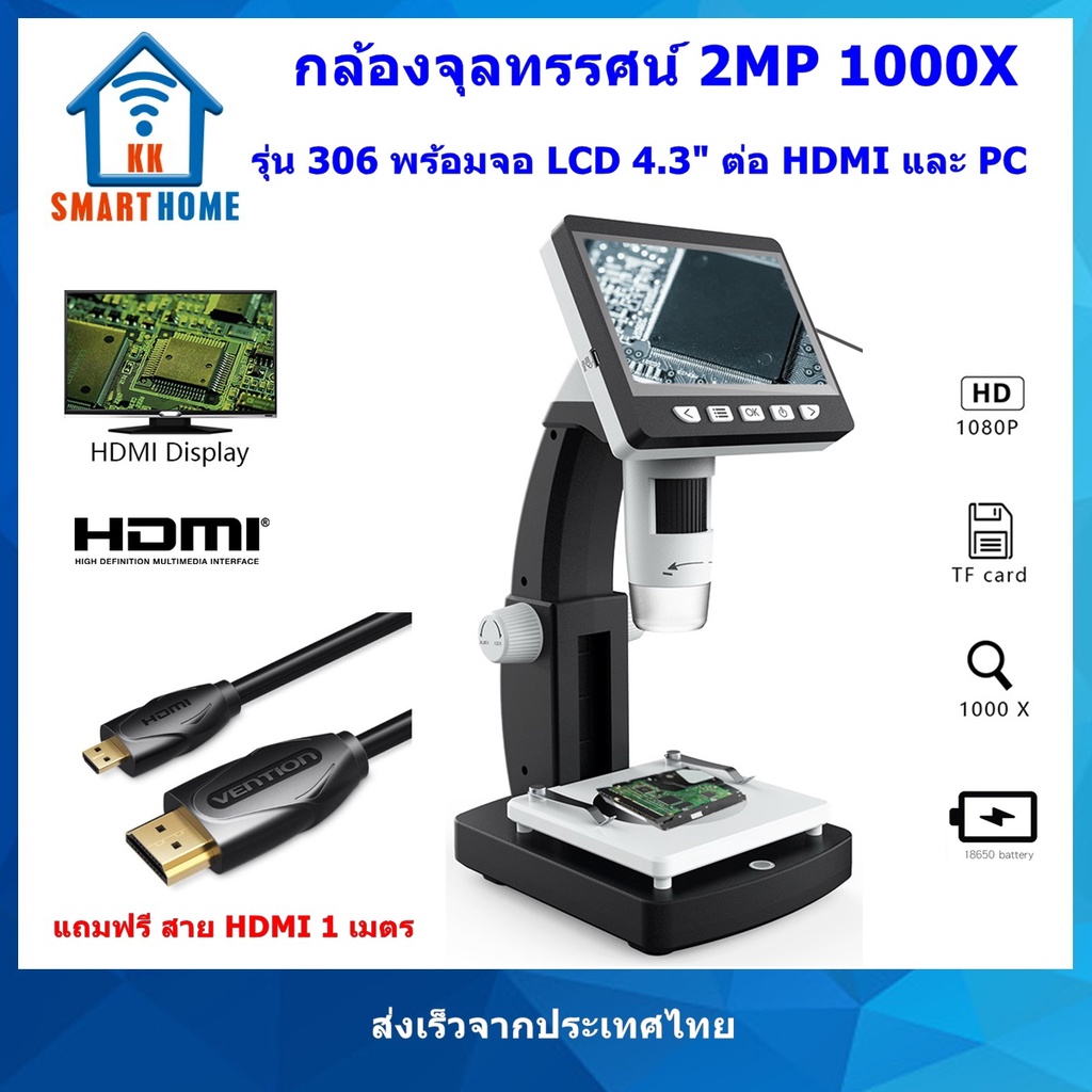 กล้อง จุลทรรศน์ LCD Microscope 306 2MP 1000X 4.3inch HDMI กล้องส่่องพระ