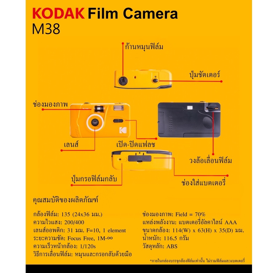 กล้องฟิล์ม Kodak M35 เปลี่ยนฟิล์มได้ แถมถ่าน Reusable Film Camera 35mm กล้องฟิล์มเปลี่ยนฟิล์มได้
