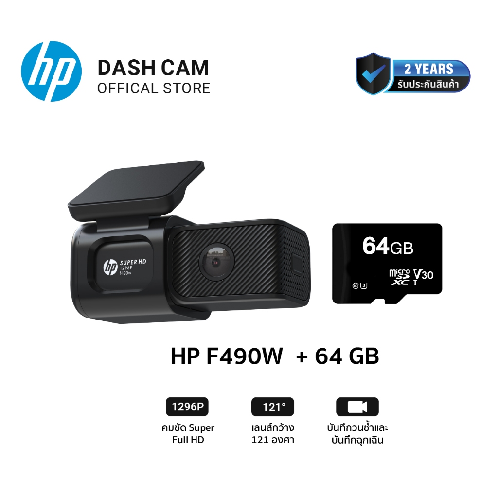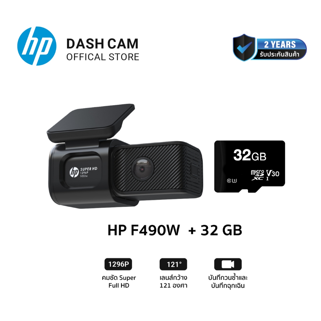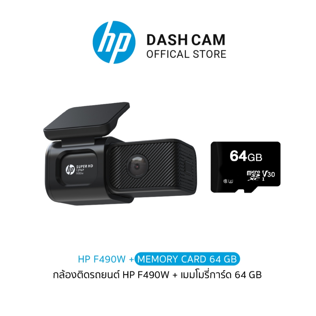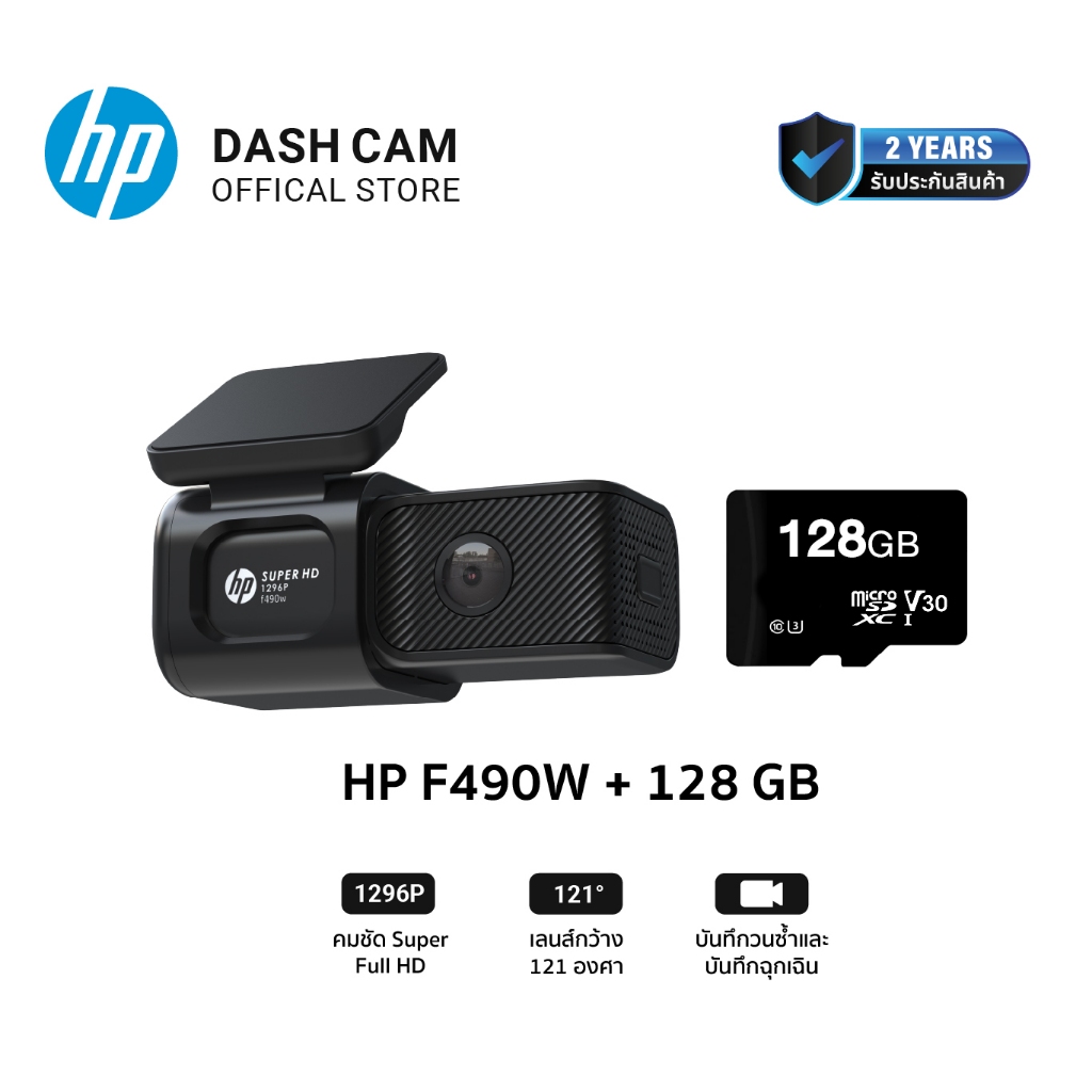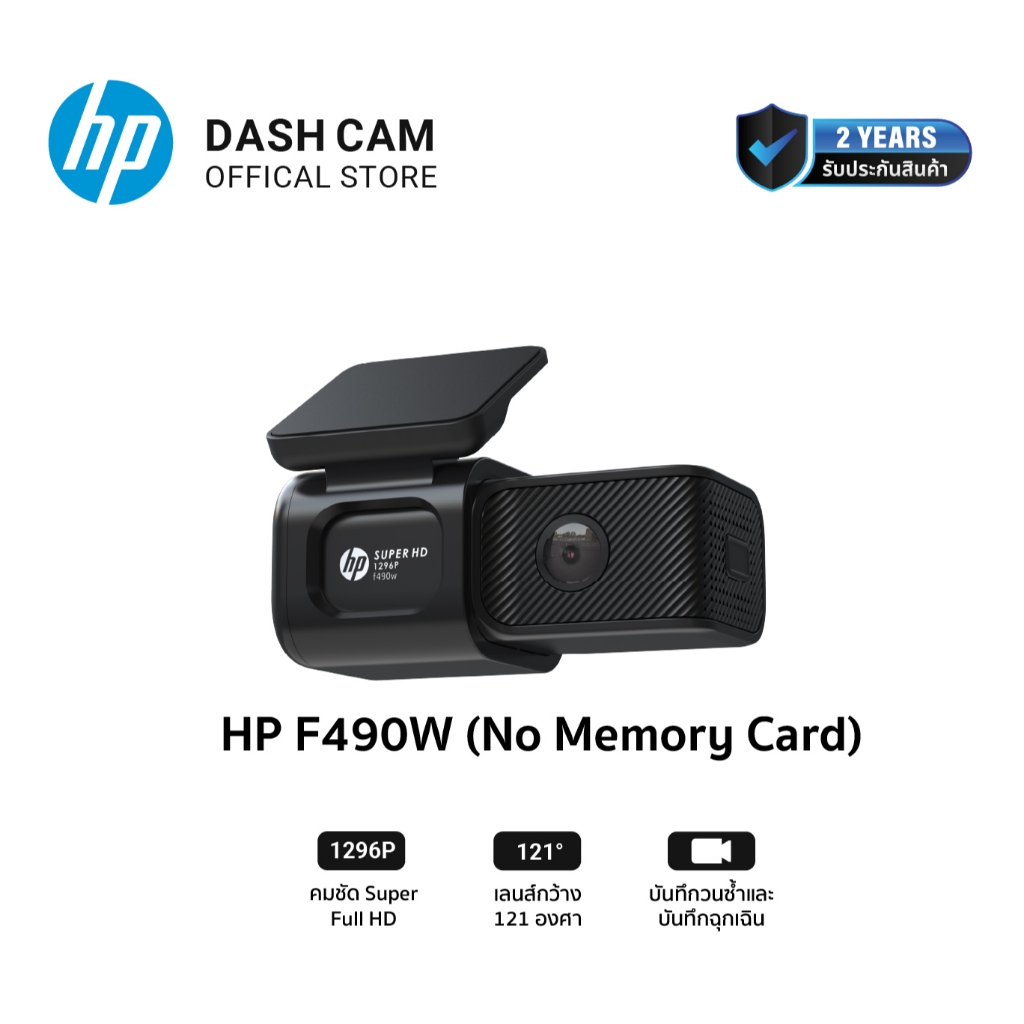 กล้องหน้าติดรถยนต์ HP F490W Dashcam Full HD 1296P Wifi กล้องติดรถยนต์ มุมกว้าง 121องศา บันทึกวนซ้ำ