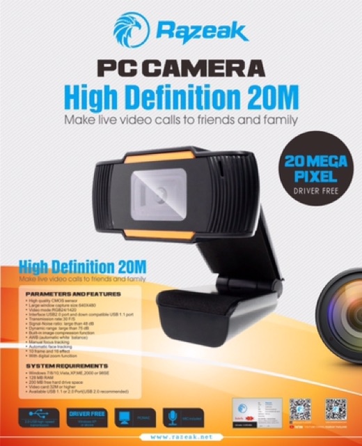 กล้องเว็ปแคม HD Webcam with Microphone For PC USB 2.0 640x480 พร้อมไมโครโฟนที่ดูดซับเสียงในตัวระยะการได้ยินเสียง 10 เมตร
