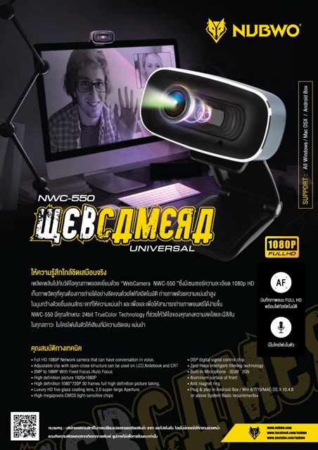 กล้อง NUBWO รุ่น NWC-550 WEB CAMERA UNIVERSAL FULL HD 1080P