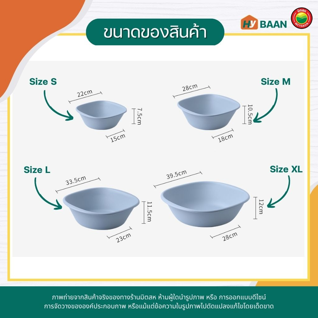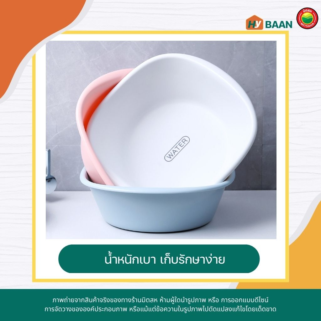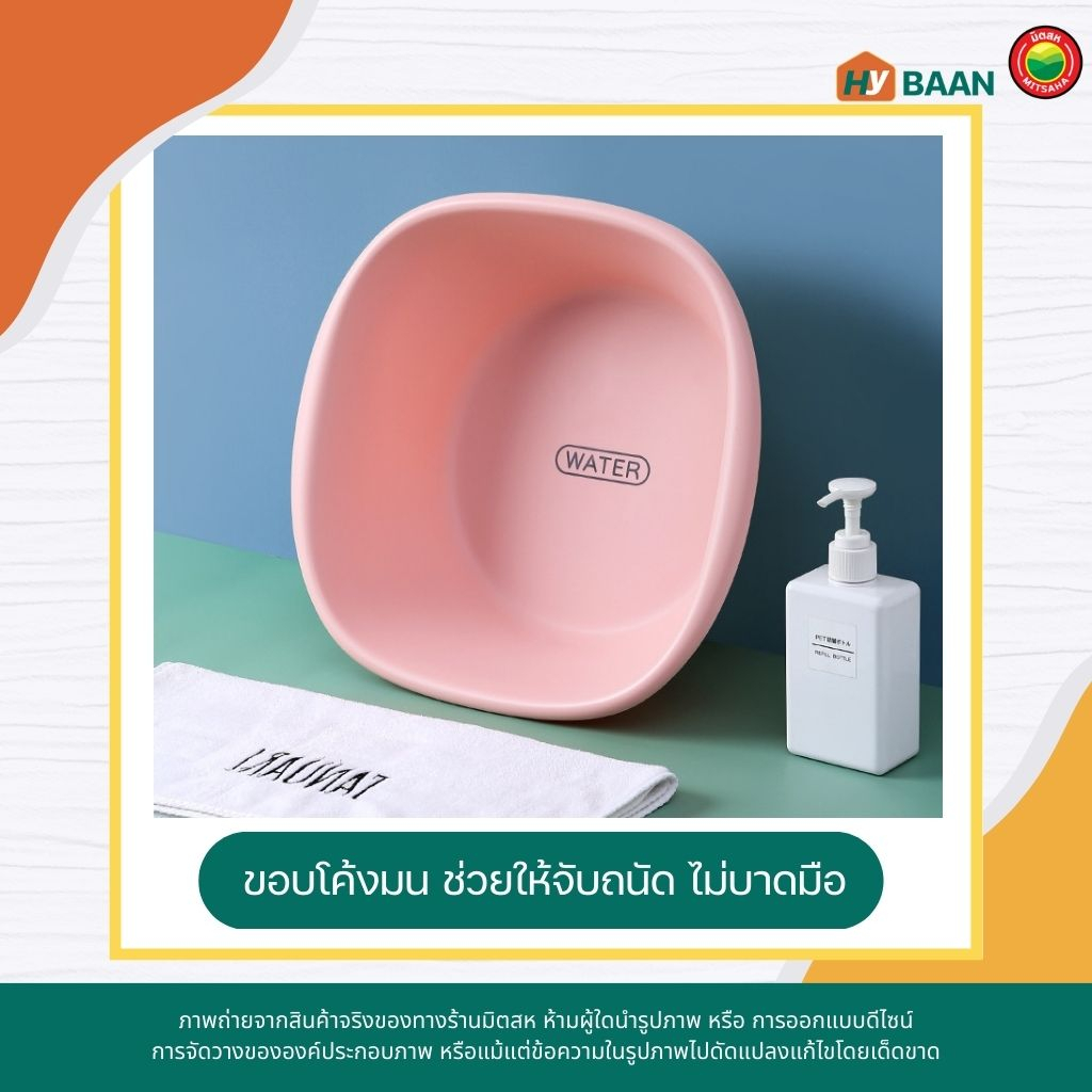 กะละมังพลาสติก ทรงสี่เหลี่ยม plastic basin มี 3 สี ชมพู, ฟ้า, ขาว 4ขนาด กะละมังซักผ้า กะละมังใส่ของ กะลามัง มิตสห Hybaan