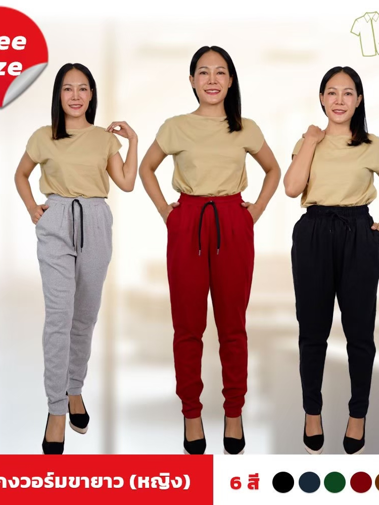 🚛🇹🇭 กางเกงวอร์ม กางเกงขายาว ออกกำลังกาย กางเกงทำงานผู้หญิง เอวยางยืด ฟรีไซส์ ปลายขาเรียวเก็บขาผอม