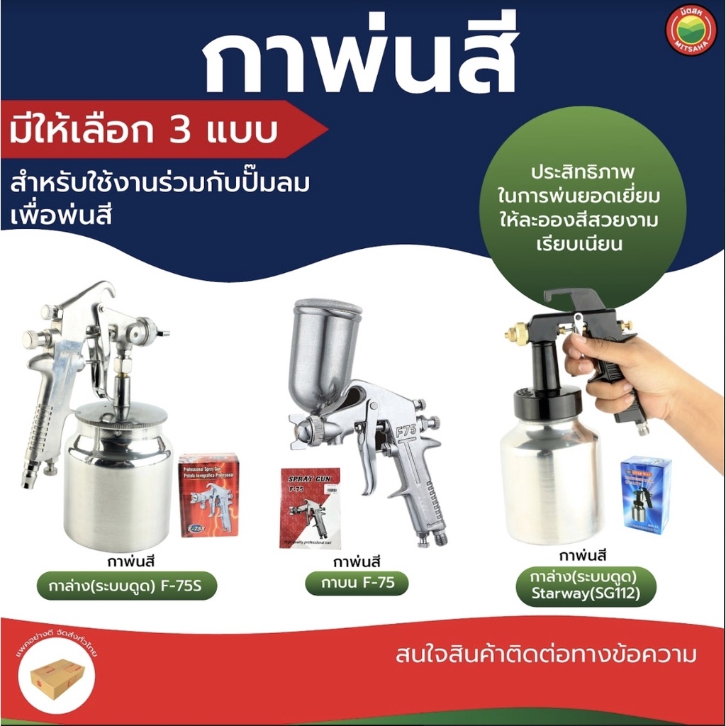 กาพ่นสี กาล่าง(ระบบดูด) ยี่ห้อ STARWAY SG112, และ กาล่าง F-75S, และ กา บน F-75 สี เงิน SPRAY GUN เครื่อง พ่นสี มิตสห