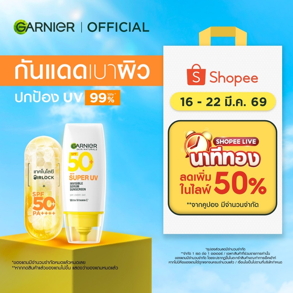 การ์นิเย่ สกิน แนทเชอรัลส์ ซูเปอร์ ยูวี-อินวิซิเบิ้ล เซรั่ม ซันสกรีน Garnier Super UV Serum Sunscreen กันแดดเบาผิว ครีมก