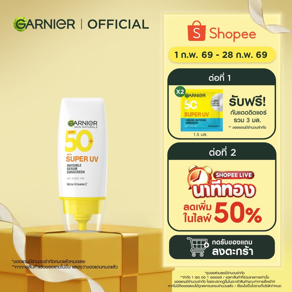การ์นิเย่ สกิน แนทเชอรัลส์ ซูเปอร์ ยูวี-อินวิซิเบิ้ล เซรั่ม ซันสกรีน Garnier Super UV Serum Sunscreen กันแดดเบาผิว ครีมก