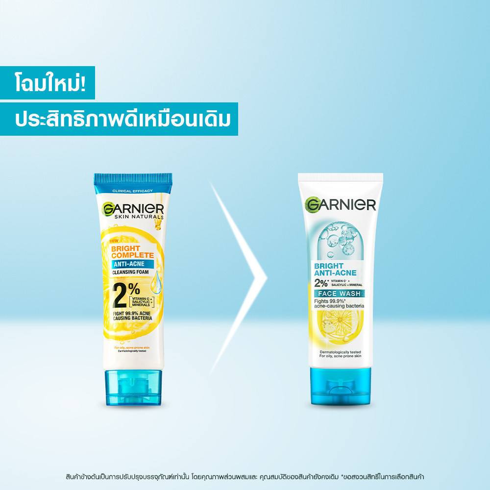 การ์นิเย่ ไบรท์ คอมพลีท แอนตี้แอคเน่ โฟมล้างหน้าลดสิว 100มล 2 ชิิ้น สำหรับผิวมัน GARNIER ANTI-ACNE FOAM 100ML 2 Pcs (โฟม