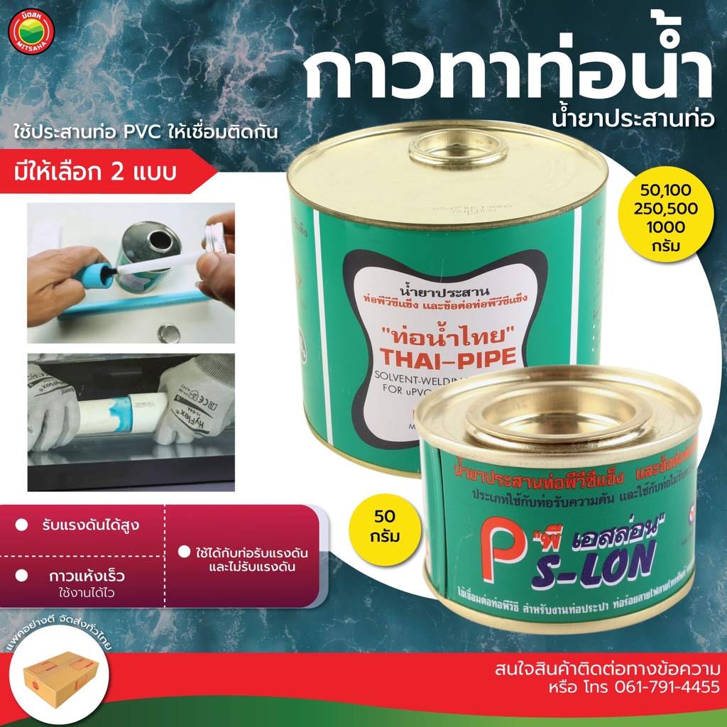 กาวทาท่อน้ำไทย พีเอสล่อน ขนาด 50, 100กรัม WATER PIPE GLUE น้ำยา ทา ประสาน ท่อ พีวีซี PVC ท่อน้ำพลาสติก กาว ติดแน่น มิตสห